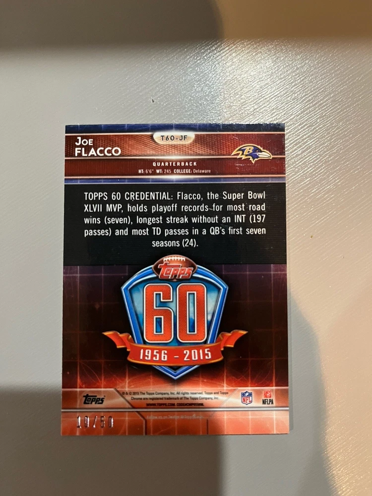 Really nice rare retro refractor of Joe Flacco of the Baltimore Ravens. Great looking card would be a great addition to any collection!
