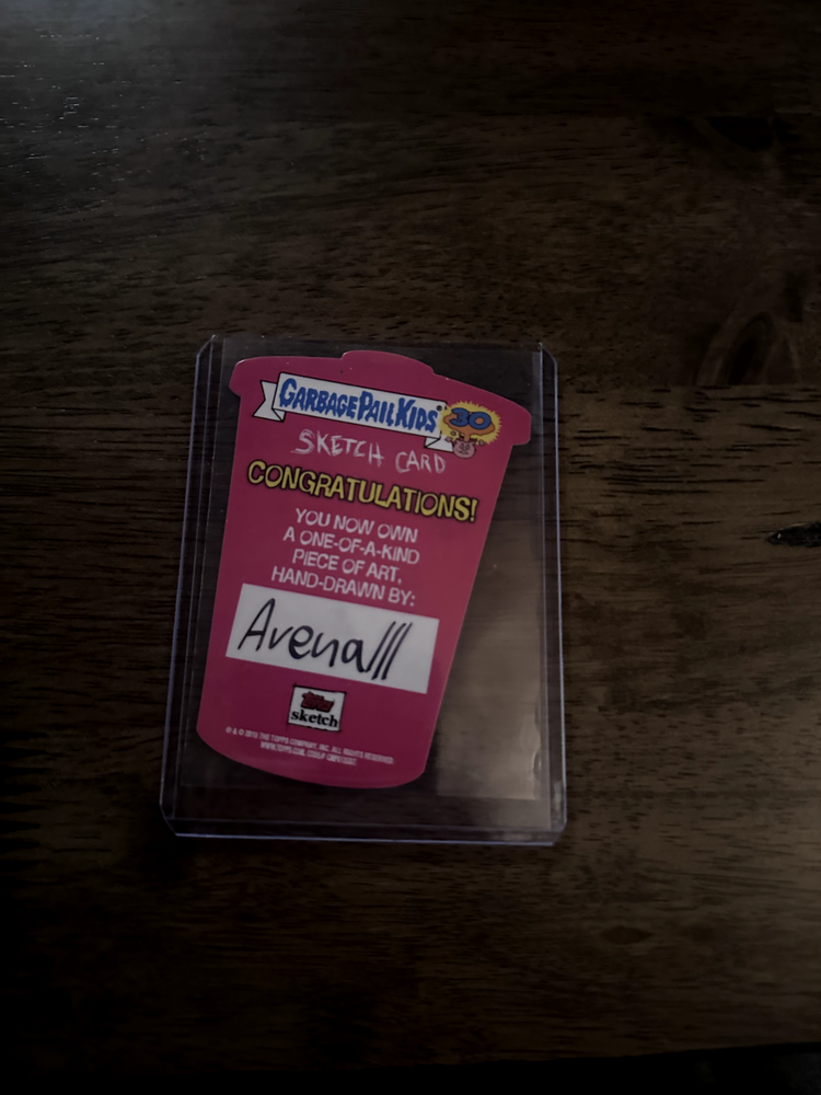 📝 Item Description Celebrate 30 years of gross-out greatness with this ultra-rare 2015 Topps Garbage Pail Kids 30th Anniversary Die-Cut Sketch Card , featuring Homer Runt — hand-drawn by the talented artist Avena . This is a one-of-a-kind (1/1) original art sketch card — no two are alike! A true collector’s gem for any GPK fan or sketch card enthusiast. 💥 Key Features: Character: Homer Runt Set: 2015 Topps Garbage Pail Kids 30th Anniversary Type: Die-Cut Shaped Sketch Card Artist: Avena Rarity: 1/1 Hand-Drawn Original Art Condition: Near Mint – pulled from pack, immediately sleeved & stored ✅ Why You’ll Love It: Authentic hand-drawn art — not a print or reproduction A standout die-cut design that adds visual impact Great display piece — frame it or keep it secure in your collection 📦 Shipping & Handling: Ships securely in a top loader & padded mailer USPS First Class or upgrade to Priority available Ships within 1 business day of payment Tracking included