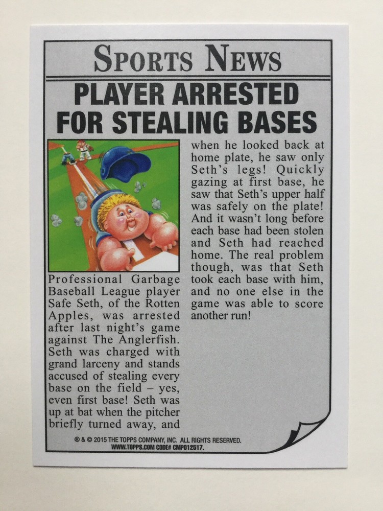 Garbage Pail Kids 2015 Series Topps Sticker 63b Safe Seth