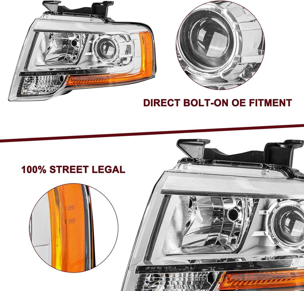 About this item 【VEHICLE COMPATIBILITY】Headlight assembly is compatible with 2015-2017 Expedition. Bulbs are not included. High beam bulb type: H9; low beam bulb type: 9005; Signal light bulb type: 7444NA; Side marker light bulb type: LED. OEM Part Number: FL1Z13008F . ABPA Partslink Number: FO2502334 . 【PREMIUM HOUSING MATERIALS】This headlamp is sturdy constructed with a fully sealed heavy duty housing made of high quality OEM grade polycarbonate plastic, waterproof up to IP65, ensuring excellent weather and impact resistance. Well built to provide bright lighting. New lenses and reflectors provide better lighting and ensure a pleasant and comfortable driving experience. 【SAFETY & DURABILITY】Made of SAE & DOT certified materials that meet or exceed OEM requirements. Micro-prism reflectors and chrome finishes within the headlights increase the light's reflectivity, making it easier for oncoming vehicles to notice you at night. Give you a safer comfortable driving experience. Stable characteristics and high reliability. 【EASY INSTALLATION】Plug-n-play installation. Direct Bolt-On OE Fitment or Replacement for the stock unit. Requires no modification or drilling. Note: installation instruction is not included, professional installation would be highly recommended. About US We will reply the message asap once we received your message, Usually reply within 24h.Expect Public Holiday. If it has some problem with the item, pls don't open the return, and we will solve the problem for you asap Payment Method We Suggest that Pay via Paypal Pleaes Pay for the item within 3 days after the bidding or purchase. E-Check Payments requires 2-4 business days to clear before we can process the order. Unpaid Item will lead to Ebay Unpaid Strike Case. Shipping Policy 1.How much is shipping and handling (S&H)? The shipping and handling costs will be clearly marked on the auction item page. 2.Please make sure the Ship-To address you type during checkout is correct. We are not responsible for any wrong or undeliverable addresses. 3.Local pick up is not available. 4.Items are generally shipped out the next business day after your payment has been cleared (Sat. & Sun. excluded.). 5.An e-mail will be sent to your eBay e-mail address upon item is shipped out. If you do not receive this e-mail in 48 Business Hours, please contact us to check the status of your transaction. . 6.International Buyers - Please Note: Import duties, taxes, and charges are not included in the item price or shipping cost. These charges are the buyer's responsibility. Please check with your country's customs office to determine what these additional costs will be prior to bidding or buying. Customs fees are normally charged by the shipping company or collected when you pick the item up. These fees are not additional shipping charges. Returm&Warranty 1.Our items come with one or two-year warranty. 2.Our warranty does not extended to any products that are physically damaged or that are not under normal operating conditions as a result of misuse or improper installation on the buyer/user's part. 3.This product comes with 30-Day Money Back Guarantee. 4.We stand behind every product we sell. If you're not pleased with your purchase, we'll be happy to make an exchange or refund. 5.For all returned products, please contact us for the returning address. Respond 1.ALL replies will be sent to your email, if you don't get response within 1-2 business days, pls check your My Messages in case your email provider has an overly-aggressive spam filterblocking eBay's emails. Please email us AGAIN. 2.Email is the priority of our customer service. Customer Service 1.Your better comments will be an encouragement for us to offer the better quality and the better service in future. 2.If you are not satisfied with them, please contact us first via Ask a Question or via Contact Seller. Your messages will be answered within 1-2 business day. We shall try our best to solve your problem to your satisfaction. On 22-Mar-22 at 10:25:26 GMT, seller added the following information: