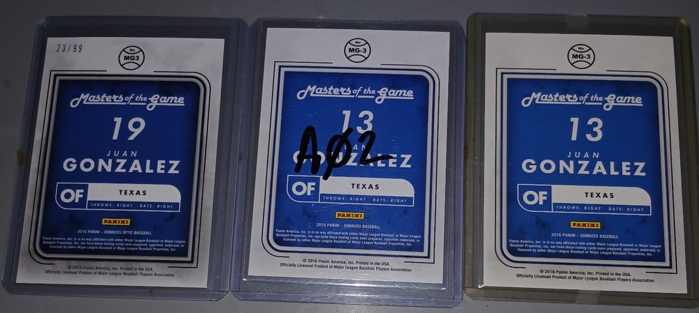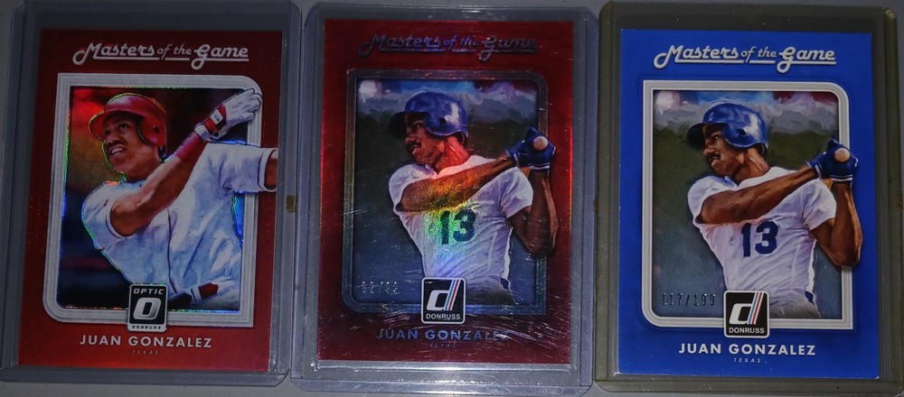 2016 JUAN GONZÁLEZ Lot 3 MASTER OF THE GAME ( OPTIC 23/99 - DONRUSS 2/99-.... Condition is Ungraded. Shipped with USPS Priority Mail.