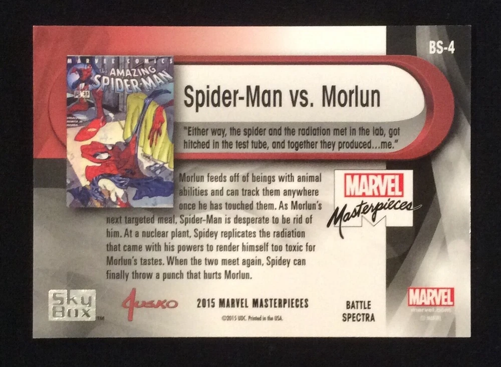 2016 Marvel Masterpieces Battle Spectra #4 SPIDER-MAN VS MORLUN Insert Card BS-4