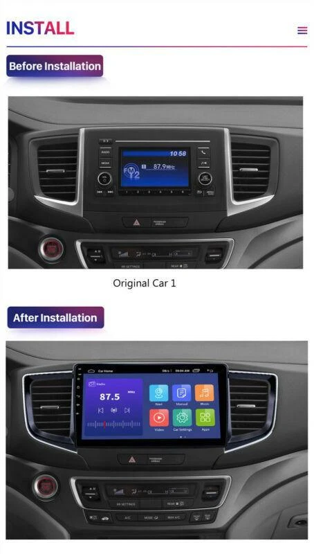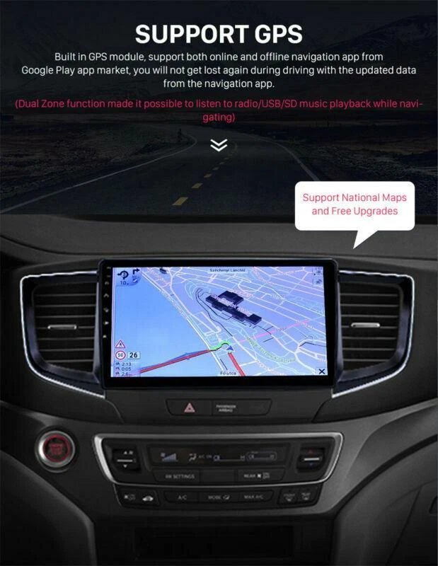 Product Description 2016-2018 Fit For Honda Pilot Stereo Radio GPS NAVIGATION 10.1 inch Android 10.0 10.1inch 1GB+16GB Android 10.0 Car Radio Multimedia Video Player Navigation GPS For Honda pilot 2016-2018 Fit for Honda pilot 2016-2018 Please check the center control of the original car is consistent with our picture, otherwise it will not be suitable for your car.Thank you OS:Android 10.0 operation system. CPU: High quality Quad-core 1.6GHz Coretex-A7 Hard Disk: 16GB RAM: 1GB DDR3 Screen: 10.1 inch 2.5D multi-touch screen with smooth operation, high sensitivity and abundant interaction for the better view of your road ahead. Resolution: 1024*600 Capacitive or Resistance Screen: Capacitive WiFi: Built-in WiFi Modem Internet Online Entertainment: Online Video, TV, Movie, Music, Radio, Video Chat Online Navigation: Online Google Maps Navigating Online Games: Yes, online play or you can download it from google play store Online Communication: WeChat, Twitter, Facebook, Skype, Gmail, Whatsapp etc. Audio Format: MP3/WMA/MP2/OGG/AAC/MA4/FLAC/APE/WAV etc. Could play via song list Radio surport: FM DVR:Support (NEED TO BUY SEPARATELY,Not included) DAB:Support(DAB+ BOX NEED TO BUY SEPARATELY,Not included) Support Mirror Link function: iPhone and android smartphone Built-in bluetooth, phone book and BT music Supported languages: English French German Indonesian Malaysian Czech Danish Austrian Spanish Filipino Croatian Italian Latvian Lithuanian Dutch Norwegian Polish Romanian Finnish Swedish Vietnamese Vietnamese Turkish Bulgarian Russian Ukrainian Bengali Thai Nepali Korean Japanese Package included 1 x Host 1 x Power harness 1 x RCA cable 2 x USB cable 1 x CAM cable 1 x GPS Antenna eBay Cross Border Trade powered by ChannelEffect