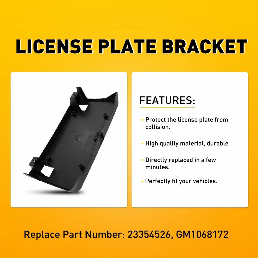 WARNING: This product can expose you to chemical which is k Custom Bundle : No Fitment Type : Direct Replacement Interchange Part Number : 23354526 GM1068172 2019 2018 2017 2016 Chevrolet, Chevy Silverado 1500 LD Front Crew Cab Pickup Extended Cab Pickup Standard Cab Pickup 6Cyl 8Cyl 4.3L 5.3L 6.2L Custom LS LT High Country LTZ WT SSV License Plate Bracket Manufacturer Part Number : 14160093 OE Number : 23354526 OE/OEM Part Number : 23354526 GM1068172 Part Link Number : GM1068172 Part Name : License Plate Bracket Partslink Number : GM1068172 Performance Part : No Placement on Vehicle : Front Superseded Part Number : 68184802AA,68184802AB, 68184802AC Universal Fitment : No UPC : 723650576878 Warranty : 1-year unlimited-mileage warranty Suitable For : Car Color : Black Material : ABS Features : Chip & Crack Resistant Theme : Business Personalize : Yes Vintage Part : Yes Finish : Polished Chrome Attachment Type : Clip-On Manufacturer Warranty : 2 Years Superseded Part Number : 68184802AA,68184802AB, 68184802AC FAQ Pay & Ship Returns Contact Us About us ♥ If you have a decoding problem or any other problems, please contact us first, we will help you with it. We will reply you within 24 hours in working days. I'm a new seller, thanks a lot for your trust and convince! I will serve you with all my heart. ♥ Q1: Will this bulb fit my vehicle? A: We can match almost any vehicle to one of our bulb sizes. eBay only lets us include some vehicle fitments per listing, but if your vehicle does not show up on the compatibility table at the top of our listings, welcome you to contact us for free consulation before purchasing a product. Q2: My item has not arrived, what's taking so long? A: Sometimes items take longer than expected, especially if it’s going far or to rural area. Check with your post office to see if your item has been held up. Sometimes Royal Mail will not update a tracking number until it has arrived at its destination. If your item still don't arrive after a few days, let us know so we can double check for you and help solve it asap. Q3: My bulbs won't fit, help! A: Special bulb holder may be required. See if you can take the holder from the stock bulb. If not, let us know. The bulb size may be wrong, double check the item you received with the item you ordered. Do you have an aftermarket lighting housing? These may not be perfectly fitted for aftermarket bulbs and will require some manual modifications. Q4: Neither side lighting up? Both sides flicker, hyper flash, or work inconsistantly. A:Check the light fuses, and then check the ballast plugs to insure correct installation. If this doesn't work, there may be a voltage problem with the vehicle. You probably just need a relay or capacitor. Even though some bulbs are builtin resistors, they may still need a decoder. (1). We gladly accepts payment via PayPal, We will ship your item(s) within 24 hours. (2). Before payment, please keep the consistency of Paypal address and ebay address. (3). Quantity orders are welcome! (1). We offer 60 days free return policy. Please contact us within 60 days from the date you receive your order if you have any issues with the product or want return. Refund will be send after we got your resend package. (2). All returned items should be in the original packaging , return tracking information should be provided . (1).Negative feedback will not help resolve any problems you have, please contact us via eBay messages before leaving negative feedback , our customer service will make best effort to help you with the issues. (2).We maintain high standards of excellenceand strive for 100% customer satisfaction! Feedback is very important to us. We request that you contact us immediately before you give us neutral or negative feedback, so that we can satisfactorily address your concerns. We're professional in car and motorcycle accessories, especially in LED bulbs. We have our own factory and R&D team. Our belief is to sell top quality items that fit your car and serve you with our heart. Anything please feel free to contact us! Our customer service is very responsibility. Come and follow us! On Feb 26, 2025 at 04:43:31 PST, seller added the following information: