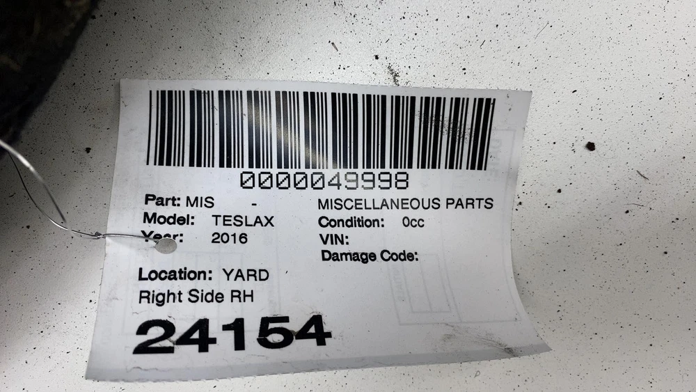 Donut Auto Dismantling Donut Auto Dismantling Rancho Cordova, CA Business Hours (PST/PDT) Mon - Fri 8am - 5pm Closed Sat & Sun Miscellaneous Parts Year: 16 Model: TESLA X Side: Type: Used Category: ND Condition: 0cc Vehicle Stock #: 24154 Part Stock #: 0000049998 Additional notes: Right Side Rh Interchange: Also fits: Search for more parts from this donor vehicle Search for more parts for TESLA X Dear Valued Customers Before ordering, please verify the part number and compare the physical details of your part with the photos in our listing. Tesla sometimes changes parts within the same model year, so even if the year matches, variations may exist. Examine all photos and read the description. Please contact us and ask any questions you have about the item. What you see in the pictures is what you will receive. Item are sold as Pictured in our ads, All the damages are marked in pictures with colored markings ........ indicated scratches, O indicate dents/dings view all photos and description. All Parts come with a 30-Day warranty Compatibility We are not responsible for compatibility, please order parts with the same part number to avoid delays and fitment issues in your purchase. Always verify O.E.M part numbers check fitment. Shipping & Return Policy For LTL and freight shipments of large items like Battery Packs, Seats, Doors, Trunks, Hoods, and other sizable body parts, a commercial address is mandatory . This must be a business equipped with a dock or forklift. Please note that deliveries cannot be made to restaurants, office buildings, or hotels. Please allow 5-11 business days from the shipping date to receive freight items. If a forklift is not available to unload your package, please ensure that you added liftgate service fee to your order. Residential deliveries have an extra charge required by LTL to cover liftgate usage and city ordinance. Be advised not all LTL freight companies offer lift gate services in every town especially in rural areas. If you do not have a commercial address or a proper residential address reach out to us to work things out LTL items can always be held at your local hub and made available for pickup. We offer free local pickup Monday through Friday, from 8:00 AM to 5:00 PM. What separates us from our competitors As Pioneers in the Tesla used parts market Donut Auto Parts is leading in the industry. We have been specializing in Tesla's for over 5 years. Our Staff are highly trained and experienced Tesla specialists. We strive to help you solve all your part needs. Local Customers For our local customers we provide installation on battery packs and drive units purchase. Drive unit and battery pack installations come with a 60 day warranty . All parts are fully tested. Using the industries leading tools, we also provide installation of other parts. Please reach out to us directly for more information. Be Advised Programming may be required for most electronic components. Donut Auto Parts is not responsible for any labor costs and other charges such as programming. NO RESTOCKING FEE Payment Payment must be submitted within 48 hours after purchase time. We have a Same handling time when paid by 2pm pst and 3-day handling time for LTL freight items. Feedback and Rating We always Strive to earn positive feedback. If you encounter an issue with one of our items, please contact us before leaving any feedback or opening a case give us the opportunity to solve your order issue. We strive to provide excellent customer service to ensure that everyone is satisfied, and to gain happy and returning customers! ALLOW US TO RESOLVE ISSUES BEFORE LEAVING YOUR FEEDBACK PLEASE CONTACT US FIRST Airbag Notification If the item above is an airbag, I certify this airbag is not subject to recall and will be shipped in accordance with hazmat shipping requirements . Powered by Checkmate