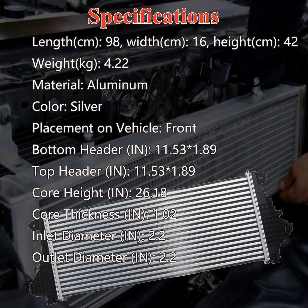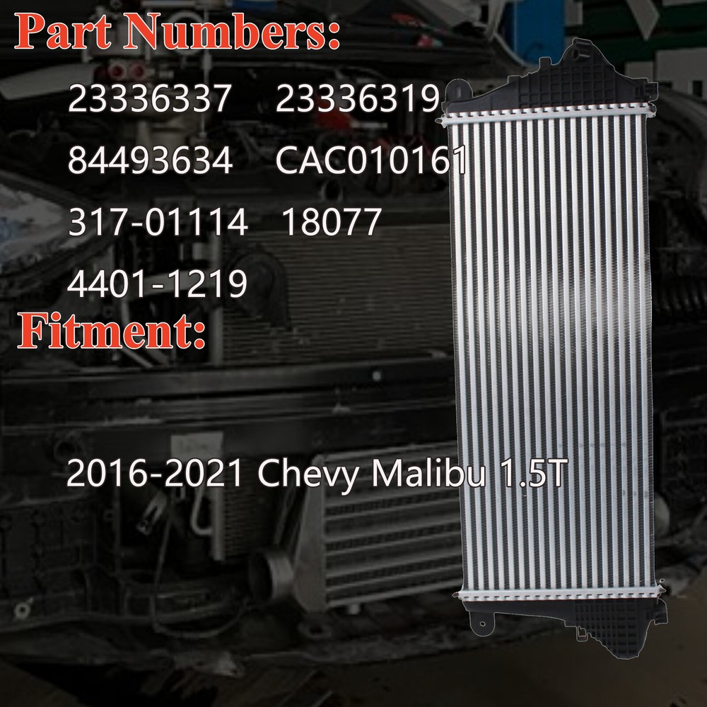 This intercooler is a perfect fit for my 2018 Malibu—easy installation and noticeably better cooling performance. The build quality feels solid, and it arrived well-packaged with no damage. Definitely a great upgrade for better engine efficiency, especially in hot weather. Worth every penny!