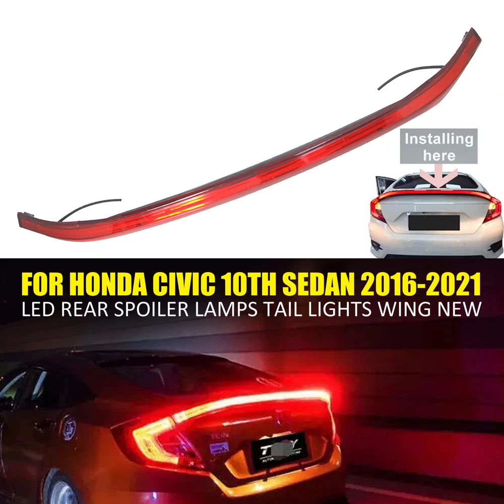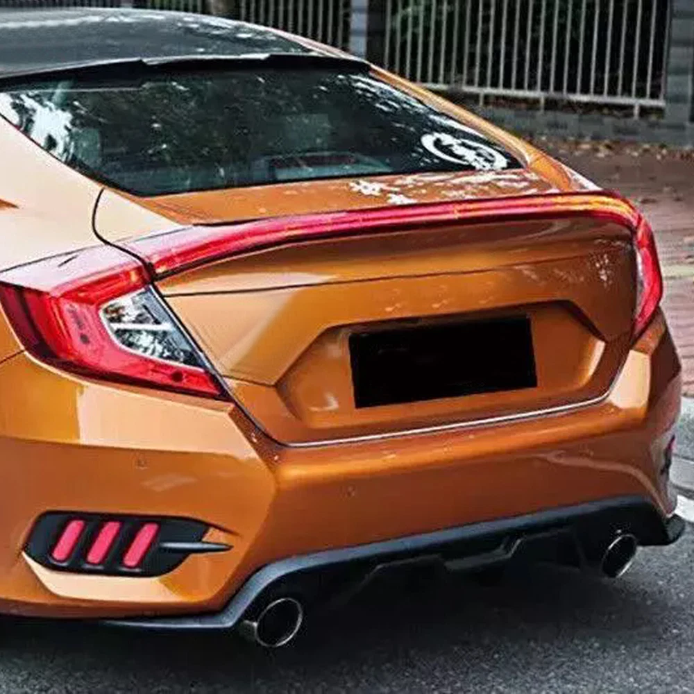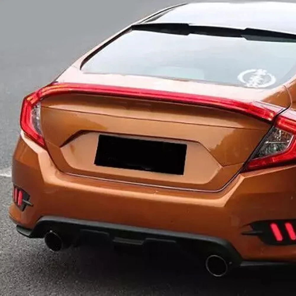 PRODUCT DESCRIPTION Fitment : For Honda Civic 10th 2016-2021 Please make sure your car is the same as the picture we show you before purchase. Features: only for Notchback 100% brand new, shown as pictured Color: as pictures show Material: made of High quality ABS With double side automotive tape on the back Perfect match for the original equipment Made in an ISO 9001 facility to ensure good quality Waterproof and never fade, wear-resisting & scratch-resistant Very light weight, wear-resistant, dirt-resistant Protect the installed area from scratches Decorate car appearances, make your car particular and unique Easy installation, simply peel and stick on Surface must be clean and dry prior to adhering Installation: · Clean the surface which the item is to be applied and insure dry · Determine exact location of item · Remove protective film from adhesive, align carefully and then press firmly to insure proper adhesion · Don't move the item or wash your vehicle within 24 hours after installation