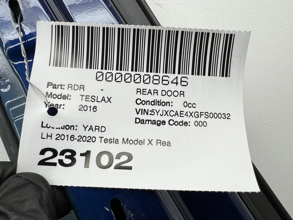 Donut Auto Dismantling Donut Auto Dismantling Rancho Cordova, CA Business Hours (PST/PDT) Mon - Fri 8am - 5pm Closed Sat & Sun Rear Door Year: 16 Model: TESLA X Side: Left Type: Used Category: Y Condition: 0cc VIN: 5YJXCAE4XGFS00032 Vehicle Stock #: 23102 Part Stock #: 0000008646 Additional notes: 2016-2020 Tesla Model X Rear Left Driver Falcon Door Shell Panel LH Blue - PPSB We can ship to your location freight hub if you don't have a commercial address that we can ship to. If we ship to a residential address there would be an extra surcharges. Interchange: Also fits: Search for more parts from this donor vehicle Search for more parts for TESLA X Airbag Notification If the item above is an airbag, I certify this airbag is not subject to recall and will be shipped in accordance with hazmat shipping requirements . Payment We accept Paypal, Venmo, Zelle, Visa, MasterCard, American Express, and payments transacted through eBay Managed Payments Sales tax collected by eBay where applicable Pay on pickup available for orders placed for local pickup Shipping We ship by FedEx, UPS, USPS, and regional freight/LTL carriers. Items shipped by freight MUST be shipped to a business with a dock or forklift access; otherwise, liftgate and/or residential delivery fees may apply. Most items ship within 24 hours of payment; items paid for on the weekend or holidays ship on the following business day. Any free shipping we offer is for the continental United States only. If you are from Hawaii, Alaska, or a Territory of the United States, please request a shipping total before bidding and we will do our best to keep the cost low. Local delivery and local pickup options are also available. Warranty & Returns Standard 30-day warranty on all parts Parts must be returned in original, undamaged, and unmodified condition Please verify fitment independently prior to purchase, as the information in the "compatibility" section above is generated by eBay Motors and not from us. If you have questions or concerns about fitment, please contact us prior to purchase. Contact Us If you have any questions regarding an eBay item, please CONTACT US via eBay messaging before you make the purchase. Please verify fitment independently prior to purchase, as the information in the "compatibility" section above is generated by eBay Motors and not from us. If you have questions or concerns about fitment, please contact us prior to purchase. After you have received your product in satisfactory condition, please leave us positive feedback. If there is a problem with your purchase, do not leave neutral or negative feedback: CONTACT US so that we can help you to resolve your issue to your satisfaction. Powered by Checkmate