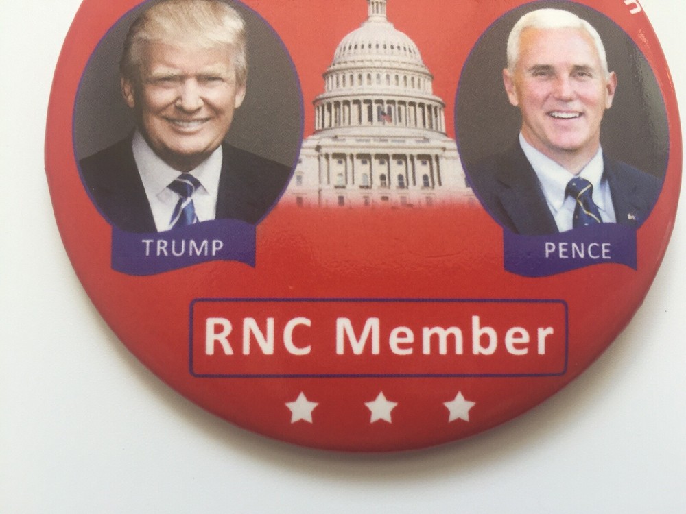 January 20, 2017: The Inauguration of Donald Trump "The 58th Presidential Inauguration" "RNC Member" Button from Winter Meeting Nice 3" Button For sale is an original 3" button in honor of the 2017 Inauguration of President Donald Trump. It was distributed to RNC Members at the RNC Winter Meeting. It features photos of Trump & Mike Pence with the U.S. Capitol in the middle. It is labeled with the "RNC Member" designation. A nice collectible honoring our 45th President. Domestic USPS First Class shipping is free securely packaged in a padded mailer. Please message with any questions. Thank you!