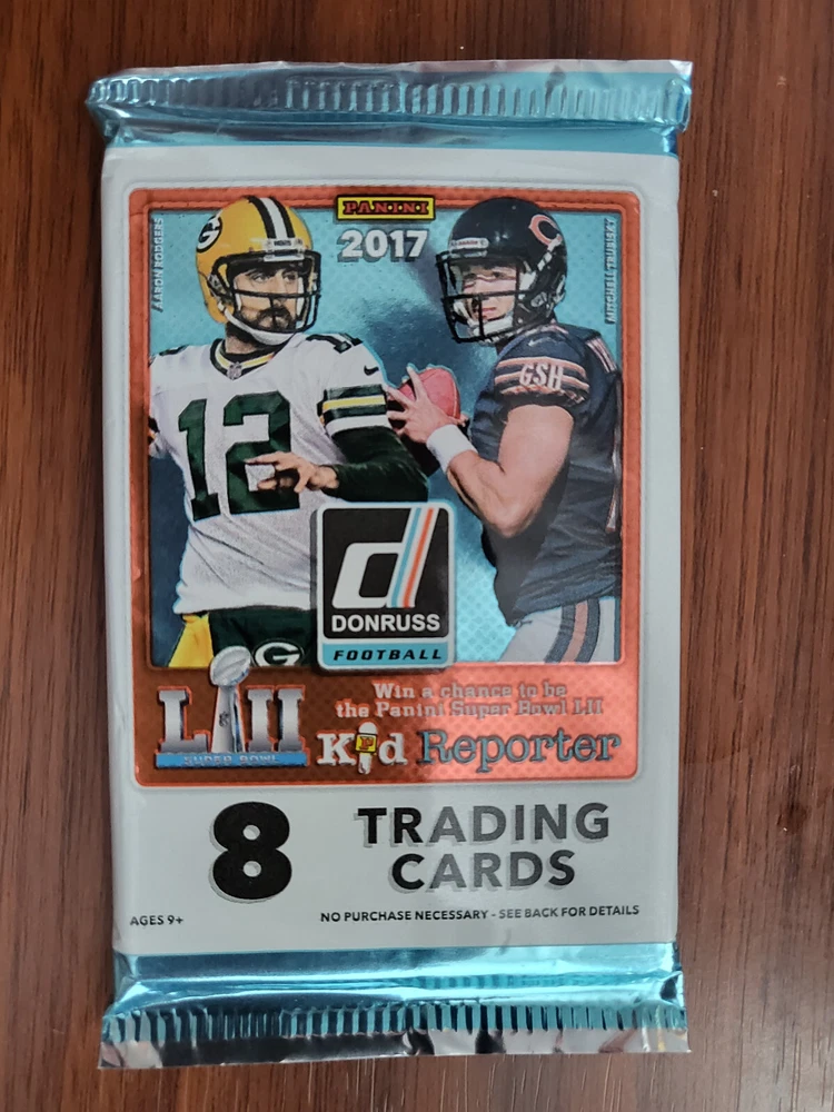 Factory sealed packs. Full Checklist: Base 1 J.J. Watt - Houston Texans 2 Josh McCown - New York Jets 3 Cameron Meredith - Chicago Bears 4 Richard Sherman - Seattle Seahawks 5 C.J. Anderson - Denver Broncos 6 Dan Fouts - San Diego Chargers 7 Ted Ginn Jr. - New Orleans Saints 8 Cody Kessler - Cleveland Browns 9 Mohamed Sanu - Atlanta Falcons 10 Eli Manning - New York Giants 11 Steve Smith Sr. - Carolina Panthers 12 DeAndre Washington - Oakland Raiders 13 Golden Tate III - Detroit Lions 14 Ryan Tannehill - Miami Dolphins 15 Jalen Ramsey - Jacksonville Jaguars 16 Michael Thomas - New Orleans Saints 17 Tedy Bruschi - New England Patriots 18 Antonio Brown - Pittsburgh Steelers 19 Cameron Brate - Tampa Bay Buccaneers 20 A.J. Green - Cincinnati Bengals 21 Larry Fitzgerald - Arizona Cardinals 22 Joe Flacco - Baltimore Ravens 23 Phil Simms - New York Giants 24 Lorenzo Alexander - Buffalo Bills 25 Rob Gronkowski - New England Patriots 26 Joe Haden - Cleveland Browns 27 Martellus Bennett - Green Bay Packers 28 Haloti Ngata - Detroit Lions 29 Charles Sims - Tampa Bay Buccaneers 30 Desmond Trufant - Atlanta Falcons 31 Calvin Johnson - Detroit Lions 32 Bruce Smith - Buffalo Bills 33 Julian Edelman - New England Patriots 34 Ben Roethlisberger - Pittsburgh Steelers 35 Cam Newton - Carolina Panthers 36 Josh Norman - Washington Redskins 37 Tyrann Mathieu - Arizona Cardinals 38 Demaryius Thomas - Denver Broncos 39 Dak Prescott - Dallas Cowboys 40 Frank Gore - Indianapolis Colts 41 Theo Riddick - Detroit Lions 42 Jason Pierre-Paul - New York Giants 43 Terrell Suggs - Baltimore Ravens 44 Allen Robinson - Jacksonville Jaguars 45 Jared Goff - Los Angeles Rams 46 Xavier Rhodes - Minnesota Vikings 47 Greg Olsen - Carolina Panthers 48 Julio Jones - Atlanta Falcons 49 Kwon Alexander - Tampa Bay Buccaneers 50 Leonard Williams - New York Jets 51 Robert Woods - Los Angeles Rams 52 Jurrell Casey - Tennessee Titans 53 Ryan Shazier - Pittsburgh Steelers 54 DeForest Buckner - San Francisco 49ers 55 Eric Ebron - Detroit Lions 56 Hunter Henry - Los Angeles Chargers 57 Marvin Jones Jr. - Detroit Lions 58 Geno Atkins - Cincinnati Bengals 59 Aqib Talib - Denver Broncos 60 Randy Moss - Minnesota Vikings 61 Chris Hogan - New England Patriots 62 Alshon Jeffery - Philadelphia Eagles 63 Will Fuller V - Houston Texans 64 Tom Brady - New England Patriots 65 Terrelle Pryor Sr. - Washington Redskins 66 Chris Harris - Denver Broncos 67 Carson Palmer - Arizona Cardinals 68 Sam Bradford - Minnesota Vikings 69 Danny Amendola - New England Patriots 70 Aaron Donald - Los Angeles Rams 71 Robby Anderson - New York Jets 72 Ty Montgomery - Green Bay Packers 73 Kyle Long - Chicago Bears 74 Giovani Bernard - Cincinnati Bengals 75 Janoris Jenkins - New York Giants 76 David Johnson - Arizona Cardinals 77 Davante Adams - Green Bay Packers 78 Jamie Collins - Cleveland Browns 79 Carson Wentz - Philadelphia Eagles 80 Mark Ingram - New Orleans Saints 81 Kenny Britt - Cleveland Browns 82 Jeremy Hill - Cincinnati Bengals 83 Eric Berry - Kansas City Chiefs 84 Navorro Bowman - San Francisco 49ers 85 Cameron Wake - Miami Dolphins 86 Robert Kelley - Washington Redskins 87 Matt Forte - New York Jets 88 Marcell Dareus - Buffalo Bills 89 Carlos Dunlap - Cincinnati Bengals 90 Terrance Williams - Dallas Cowboys 91 Quincy Enunwa - New York Jets 92 Jimmy Graham - Seattle Seahawks 93 Darren Sproles - Philadelphia Eagles 94 Jonathan Stewart - Carolina Panthers 95 Patrick Peterson - Arizona Cardinals 96 Troy Aikman - Dallas Cowboys 97 Bilal Powell - New York Jets 98 Christian Okoye - Kansas City Chiefs 99 Terrance West - Baltimore Ravens 100 Jordan Howard - Chicago Bears 101 Willie Roaf - New Orleans Saints 102 Cordarrelle Patterson - Oakland Raiders 103 Clay Matthews - Green Bay Packers 104 Keenan Allen - Los Angeles Chargers 105 Jay Ajayi - Miami Dolphins 106 J.J. Nelson - Arizona Cardinals 107 Vic Beasley Jr. - Atlanta Falcons 108 Marquise Goodwin - San Francisco 49ers 109 Corey Coleman - Cleveland Browns 110 Tevin Coleman - Atlanta Falcons 111 Adam Thielen - Minnesota Vikings 112 Latavius Murray - Minnesota Vikings 113 Pierre Garcon - San Francisco 49ers 114 Ezekiel Elliott - Dallas Cowboys 115 Emmanuel Sanders - Denver Broncos 116 Matthew Stafford - Detroit Lions 117 Landon Collins - New York Giants 118 Paul Hornung - Green Bay Packers 119 Russell Wilson - Seattle Seahawks 120 Devonta Freeman - Atlanta Falcons 121 Ha Ha Clinton-Dix - Green Bay Packers 122 Zach Ertz - Philadelphia Eagles 123 Deion Sanders - Atlanta Falcons 124 Spencer Ware - Kansas City Chiefs 125 Jeremy Kerley - San Francisco 49ers 126 Kamar Aiken - Indianapolis Colts 127 Markus Wheaton - Chicago Bears 128 Tyrell Williams - Los Angeles Chargers 129 Travis Kelce - Kansas City Chiefs 130 Luke Kuechly - Carolina Panthers 131 Coby Fleener - New Orleans Saints 132 Kevin White - Chicago Bears 133 Derek Carr - Oakland Raiders 134 Torrey Smith - Philadelphia Eagles 135 Gerald McCoy - Tampa Bay Buccaneers 136 Vontae Davis - Indianapolis Colts 137 Thomas Davis - Carolina Panthers 138 Tavon Austin - Los Angeles Rams 139 Jameis Winston - Tampa Bay Buccaneers 140 Tajae Sharpe - Tennessee Titans 141 Trevor Siemian - Denver Broncos 142 Jordan Matthews - Philadelphia Eagles 143 T.J. Yeldon - Jacksonville Jaguars 144 Dan Marino - Miami Dolphins 145 Brandon LaFell - Cincinnati Bengals 146 Jarvis Landry - Miami Dolphins 147 John Kuhn - New Orleans Saints 148 Charles Clay - Buffalo Bills 149 Melvin Gordon - Los Angeles Chargers 150 Cameron Jordan - New Orleans Saints 151 Devin Funchess - Carolina Panthers 152 Amari Cooper - Oakland Raiders 153 DeSean Jackson - Tampa Bay Buccaneers 154 Joey Bosa - Los Angeles Chargers 155 Thomas Rawls - Seattle Seahawks 156 Jesse James - Pittsburgh Steelers 157 Marqise Lee - Jacksonville Jaguars 158 LeSean McCoy - Buffalo Bills 159 Julius Thomas - Miami Dolphins 160 Andrew Luck - Indianapolis Colts 161 Jordan Reed - Washington Redskins 162 Jim Zorn - Seattle Seahawks 163 Ed Reed - Bal