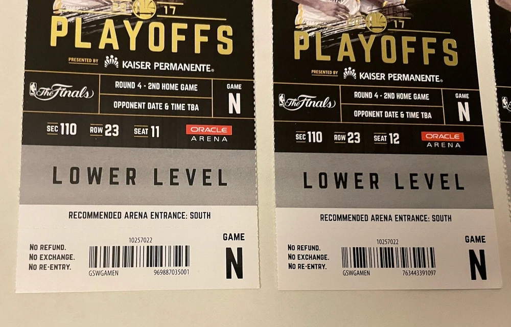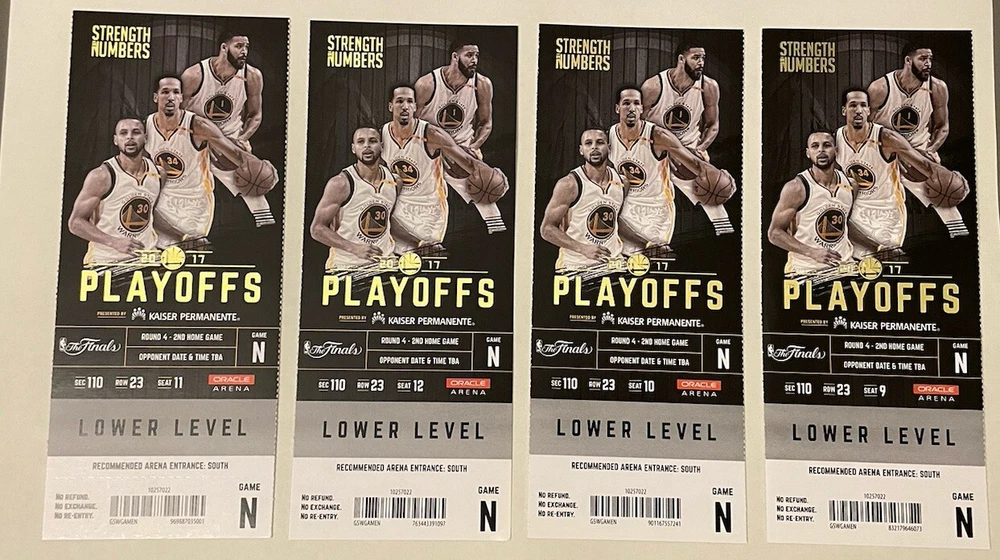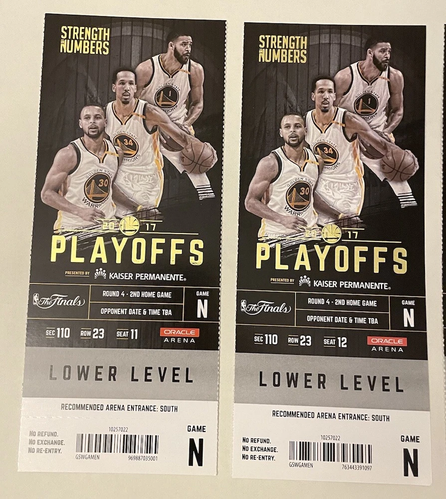 LOT OF 4 June 4, 2017 Golden State Warriors 132 - Cleveland Cavaliers 113 Kevin Durant 33pts 13reb 6ast LeBron James 29pts 11reb 14ast Steph Curry 32pts 10reb 11ast LeBron & Steph BOTH triple doubles Lebron averaged a Triple Double in this series Durant was MVP Large stub 3in X 7.25in
