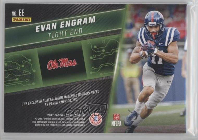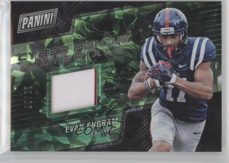 2017 Panini Cyber Monday - Cyber Monday Materials - Cracked Ice #EE Evan Engram Qty Made: 25 - Rookie - MultiSport Card - Featuring the Mississippi Rebels - Featuring Evan Engram Search for more: 2017 Panini Cyber Monday Search for more: 2017 Panini Cyber Monday - Cyber Monday Materials - Cracked Ice View all of our Listings Auctions Buy It Now About Us Located in the beautiful Pacific Northwest, COMC (Check Out My Cards) is the world's largest consignment service for trading card singles. More than 10,000 people have used our consignment service to list over 50 million trading cards. Find out how we can help you consign your items on eBay by contacting us through eBay messaging. COMC -- "The Safe & Easy Way to Buy & Sell" Representative Image - Select Specific Item above to see image of actual item Representative Image - Select Specific Item above to see image of actual item Raw Condition for Modern Cards Unless otherwise noted, raw modern cards are listed in Near Mint-Mint condition or better. A NM-MT card appears to be Mint at first glance, but upon closer inspection, may exhibit some of the following: minor print defects (e.g. roller marks, print line, dimple), minor scratches, slight edge wear, and slight corner wear. Centering is clearly visible in the images provided and does not factor into our condition assessment. Raw Condition for Vintage Cards Unless otherwise noted, raw vintage cards are listed in Excellent condition or better. An EX card may exhibit some of the following: minor rounding of corners, surface wear, print defects, light scratches, and slight edge wear/chipping. Centering is clearly visible in the images provided and does not factor into our condition assessment. Domestic Shipping Combined shipping for multiple items is available. To receive combined shipping, please ensure all desired items are in your eBay shopping cart before proceeding to checkout. eBay limits orders to 40 items per order. We automatically combine multiple orders placed on the same day. If you place multiple orders on the same day, please contact us to request a refund of applicable shipping costs. Signature confirmation may be required on invoices over $400. All cards are protected and shipped securely. International Shipping COMC offers eBay's International Shipping (EIS) for international orders under $2,500* (see country exceptions below). All duties and import fees are paid at checkout; in the rare event that there are additional import fees upon delivery, these are borne by the buyer. EIS packages route through a shipping hub in Erlanger, KY before shipping to their final destination. Please note that EIS does not allow for combined shipments. The shipping rates are determined by eBay and cannot be adjusted. *Maximum sale price exceptions: Colombia, Kuwait ($2,000); Taiwan ($1,539); Chile, Costa Rica, Guatemala, Honduras, Trinidad and Tobago ($1,000); Antigua and Barbuda, Aruba, Belize, Dominica, Grenada, Philippines, Saint Kitts and Nevis, Saint Lucia, Montserrat, Turks and Caicos Islands ($500); Dominican Republic, El Salvador ($200). Please request a shipping quote through eBay messaging for orders that exceed the maximum sale price supported by eBay's International Shipping. You will be responsible for all duties and import fees for international orders shipped outside the EIS. All cards are protected and shipped securely. Payment COMC does not accept offers on our cards through our eBay storefront. COMC utilizes eBay’s managed payments system. If you are experiencing difficulties making a payment, please contact eBay for assistance. Return Policy Returns are only accepted on the rare occasion the item is not as described. If you are making a return, please initiate the return process through eBay so a mailing label can be provided for you. Prior to listing, our expert team carefully assessed this item to represent it accurately. Please review the description and high-definition images prior to purchasing to ensure this item meets your satisfaction. We welcome you to contact us if you have further questions about this item. Trust and Integrity COMC carefully assesses each item consigned to us to prevent fraudulent items from entering the marketplace. If you believe an item offered on COMC may be fraudulent, please contact us with details so we can investigate the issue. Items we determine are outside our supported items policy may be removed. Last Modified: 4/9/2025 11:53:22 PM PDT