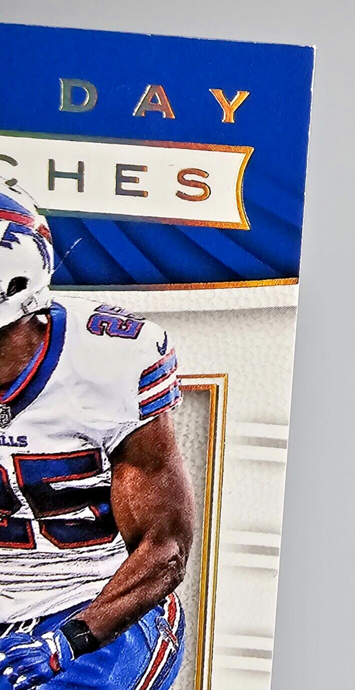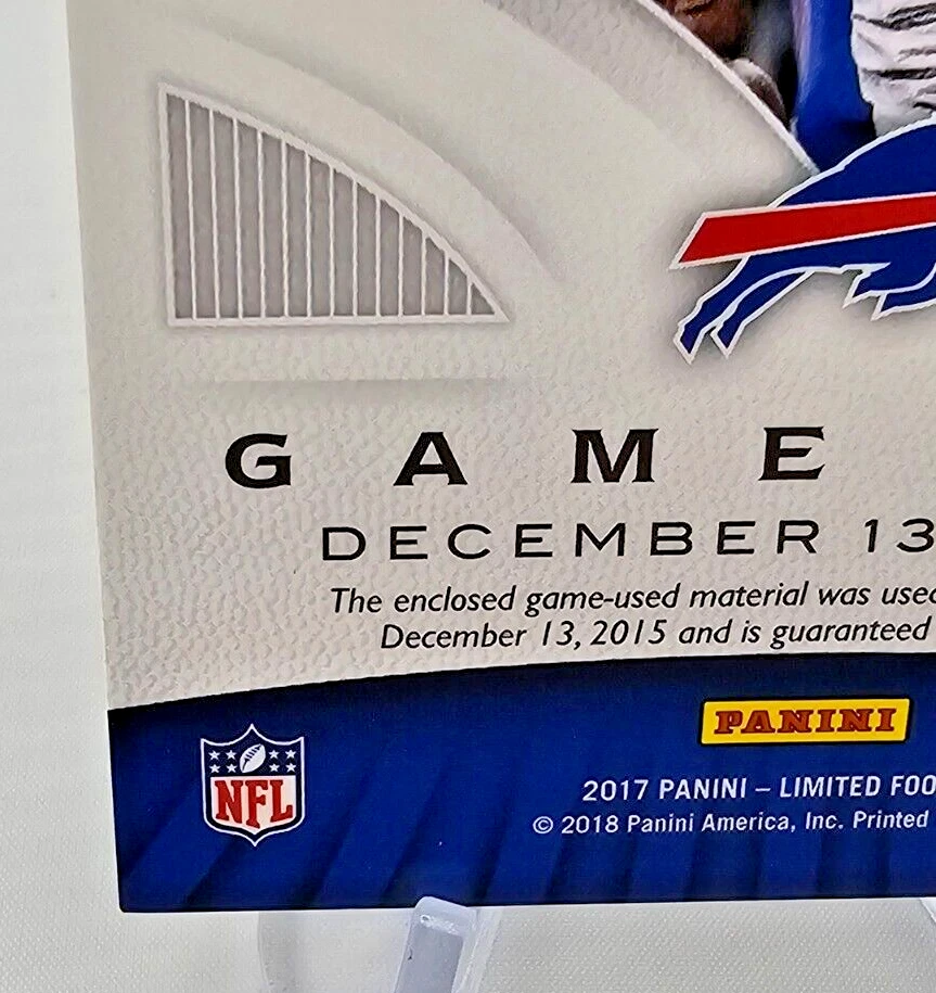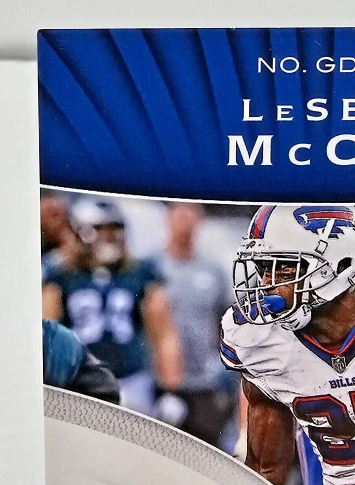 This 2017 Panini Limited Game Day Swatches Prime #GDS-LM LeSean McCoy card features a game-worn jersey piece from McCoy’s performance on December 13, 2015 , against the Philadelphia Eagles. The card is serial numbered 04/25 , highlighting its rarity, as Prime cards are serial numbered to no more than 25 , making this an exceptional addition to any collection. Card Name : 2017 Panini Limited LeSean McCoy Game Day Swatches Prime Card Number : #GDS-LM 04/25 Manufacturer : Panini Insert Name : Game Day Swatches Features : Game-Worn Jersey (12/13/2015 vs. Eagles) This rare and stunning card celebrates McCoy’s contributions to the NFL and is a true piece of football history. A must-have for any serious collector of LeSean McCoy or Buffalo Bills memorabilia. Don't miss out on this limited edition card from Panini’s prestigious series! All shipments packaged in penny sleeves, top-loaders or one touch, styrofoam sheets, and multiple bubble mailers! Please take a look at the photos attached to this listing when determining the condition of this item. If you have any questions, please don't hesitate to reach out to us! Thanks for looking!