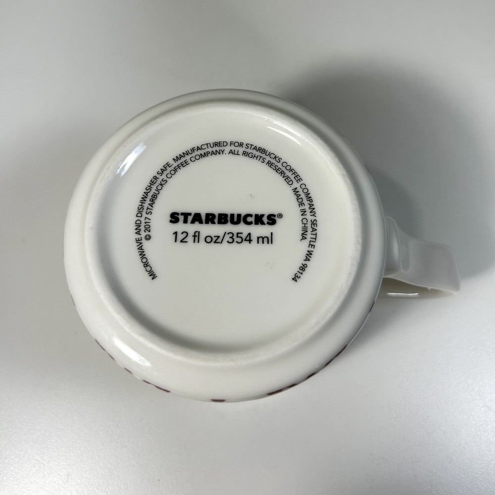 2017 12 oz Starbucks Coffee Mug Red Damask Scroll Diamond Filigree White Ceramic Please See Picture For Condition of Item and Details ! Thank You For Looking and Have a Great Day!