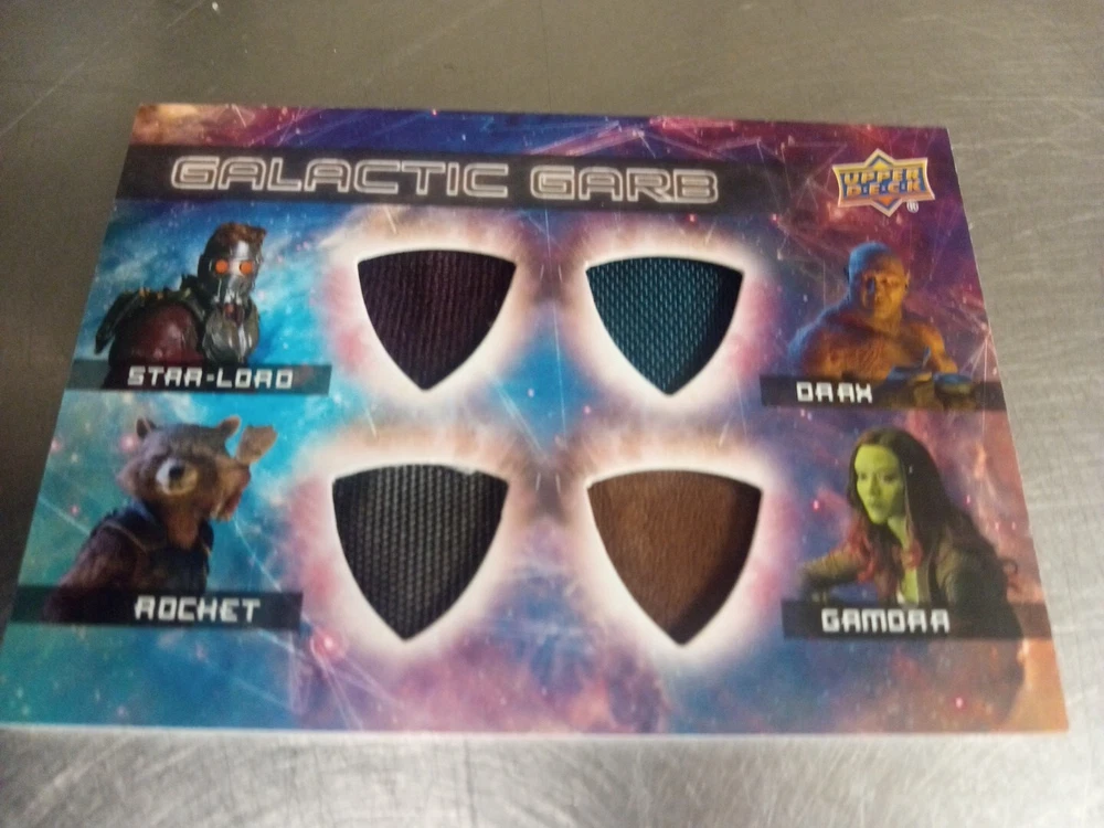 This is the same lot for the exact item shown in photos for personal grading. Please! Let me know if you have any questions or want more photos. In this lot- 2017 Marvel Guardians of the Galaxy - Galactic Garb QM-5 -- VERY RARE! Features Costume Patches from: Drax Starlord Gamora Rocket Raccoon High rated eBay seller, I take pride in safety shipping through USPS.