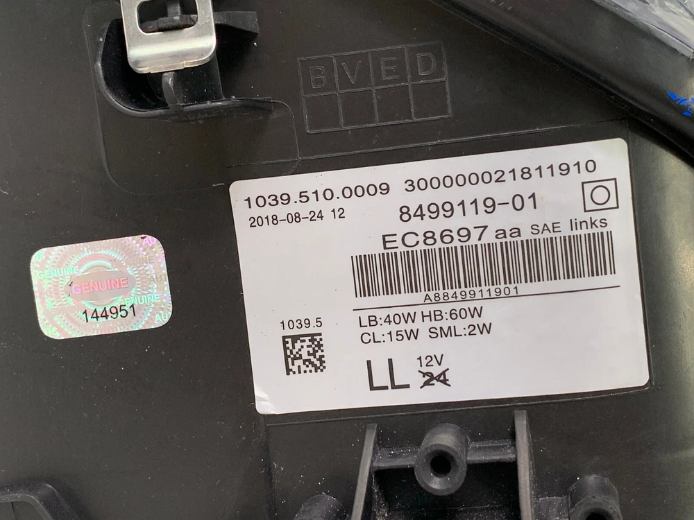 2017-2020 BMW 5-Series 530i 540i Left Driver Side Non-Adaptive LED Headlight OEM Non-AFS/non-adaptive. Nice condition! Surface looks nice. Lens has 1 inner crack (picture #8). No leaks/NOT visible when installed. No housing damages/repairs. Bulb/modules are NOT included (bare). 5 pin plug. OEM- original equipment manufacturer. Important Note: Make sure this part fits your vehicle before purchasing. If you are not sure, feel free to contact us so we can help you out. Vehicle Compatibility Chart is for Reference ONLY.