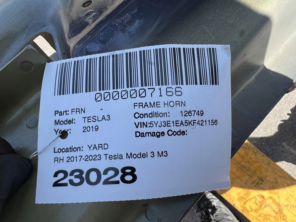 Donut Auto Dismantling Donut Auto Dismantling Rancho Cordova, CA Business Hours (PST/PDT) Mon - Fri 8am - 5pm Closed Sat & Sun FRAME HORN Year: 19 Model: TESLA MODEL 3 Side: RIGHT Type: U Category: W Condition: 126749 Vehicle Stock #: 23028 Part Stock #: 0000007166 Additional notes: 2017-2023 Tesla Model 3 M3 Front Right Quarter Panel Cut Out Frame Driver Side RH We can ship to your location freight hub if you don't have a commercial address that we can ship to. If we ship to a residential address there would be an extra surcharges. From ship date, it may take up to 5-7 business days to receive freight items. Interchange: Also fits: Search for more parts from this donor vehicle Search for more parts for TESLA MODEL 3 Dear Valued Customers Examine all photos and read the description. Please contact us and ask any questions you have about the item. What you see in the pictures is what you will receive. Item are sold as Pictured in our ads, All the damages are marked in pictures with colored markings ........ indicated scratches, O indicate dents/dings view all photos and description. All Parts come with a 30-Day warranty Compatibility We are not responsible for compatibility, please order parts with the same part number to avoid delays and fitment issues in your purchase. Always verify O.E.M part numbers check fitment. Shipping & Return Policy All Orders over $50 Signature required is applied automatically please reach out to us after ordering to request order not to be shipped signature required. LTL, freight shipments commercial address is mandatory , (business with dock or forklift needed) restaurants, office buildings, hotels will not be accepted. Residential deliveries have an extra charge required by LTL to cover liftgate usage and city ordinance. Be advised not all LTL freight companies offer lift gate services in every town especially in rural areas. A commercial address is required for all Battery Packs, Seats, Doors, Trunks, Hoods and other large body parts. If you do not have a commercial address or a proper residential address reach out to us to work things out LTL items can always be held at your local hub and made available for pickup. Free local pickup is Available Monday - Friday 8am - 5pm only. What separates us from our competitors As Pioneers in the Tesla used parts market Donut Auto Parts is leading in the industry. We have been specializing in Tesla's for over 5 years. Our Staff are highly trained and experienced Tesla specialists. We strive to help you solve all your part needs. Local Customers For our local customers we provide installation on battery packs and drive units purchase. Drive unit and battery pack installations come with a 60 day warranty . All parts are fully tested. Using the industries leading tools, we also provide installation of other parts. Please reach out to us directly for more information. Be Advised Programming may be required for most electronic components. Donut Auto Parts is not responsible for any labor costs and other charges such as programming. NO RESTOCKING FEE Payment Payment must be submitted within 48 hours after purchase time. We have a Same handling time when paid by 2pm pst and 3-day handling time for LTL freight items. Feedback and Rating We always Strive to earn positive feedback. If you encounter an issue with one of our items, please contact us before leaving any feedback or opening a case give us the opportunity to solve your order issue. We strive to provide excellent customer service to ensure that everyone is satisfied, and to gain happy and returning customers! ALLOW US TO RESOLVE ISSUES BEFORE LEAVING YOUR FEEDBACK PLEASE CONTACT US FIRST Powered by Checkmate