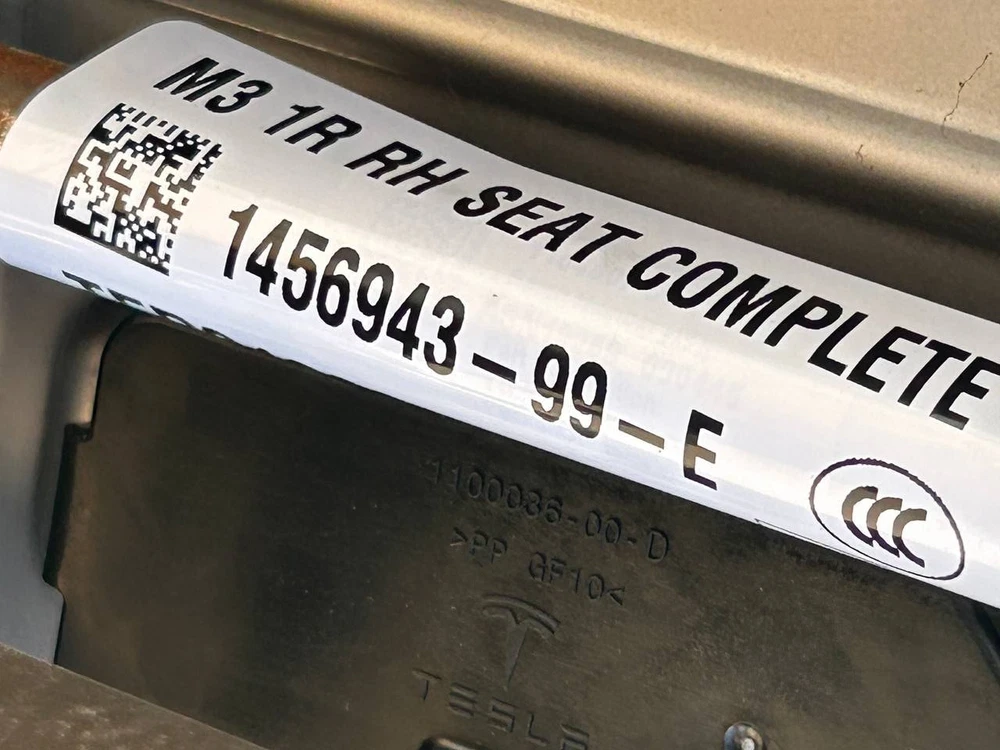 Color:BlackSeat Type:SeatOE/OEM Part Number:1456943Headrest Type:IntegratedFeatures:Easy CleanVintage Part:NoMaterial:Leather, Metal, PlasticBrand:TeslaCountry of Origin:UnknownPlacement on Vehicle:Front, Passenger Side, RightManufacturer Part Number:1456943-99-E