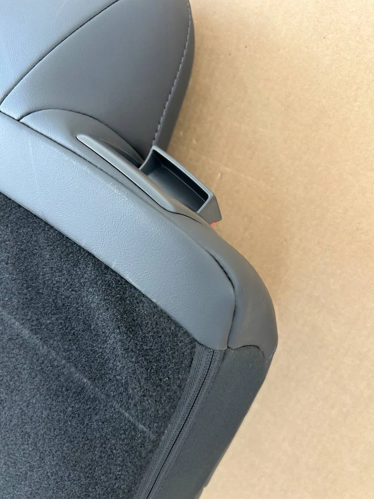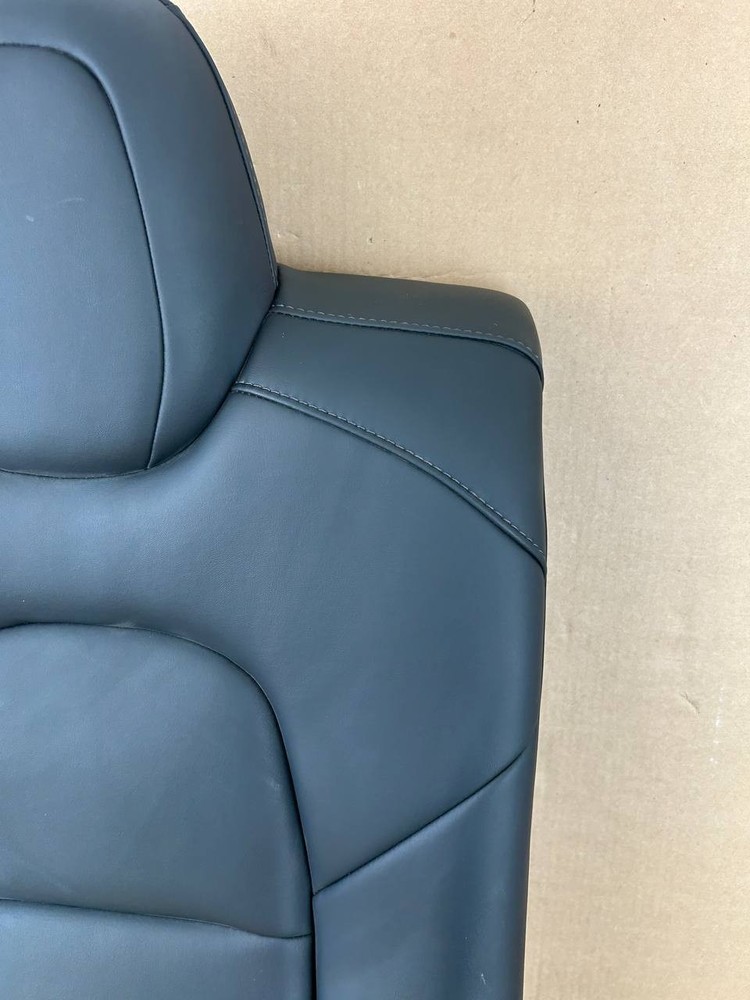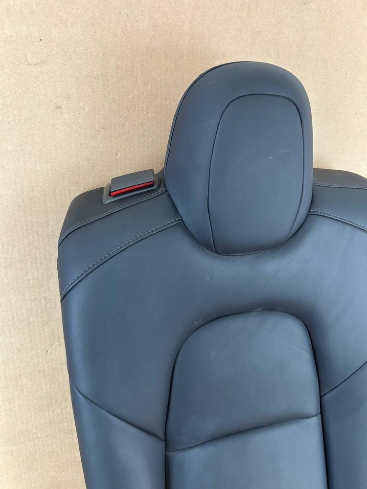 The product is a rear right seat upper cushion for the Tesla Model 3, made of black leather and plastic with a detachable headrest. It is designed for easy cleaning and is an original equipment manufacturer part with the OE/OEM part number 1452806. This bucket seat with headrest is intended for the 2017-2023 model years and is an essential interior part for the vehicle's seats. Made by Tesla, it is a high-quality and durable component that ensures comfort and style for the passengers in the rear right seat of the vehicle.