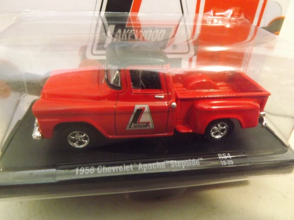This auction is for a 2018 M2, Auto-Drivers, Lakewood, Red, 1958 Chevrolet Apache Stepside, R54, 18-29 , 1/64 Scale , Car is mint card is near mint , Winning bidder pays $5.50 for Shipping and Handling with Delivery Confirmation in the U.S.A. Will combine shipping. ,