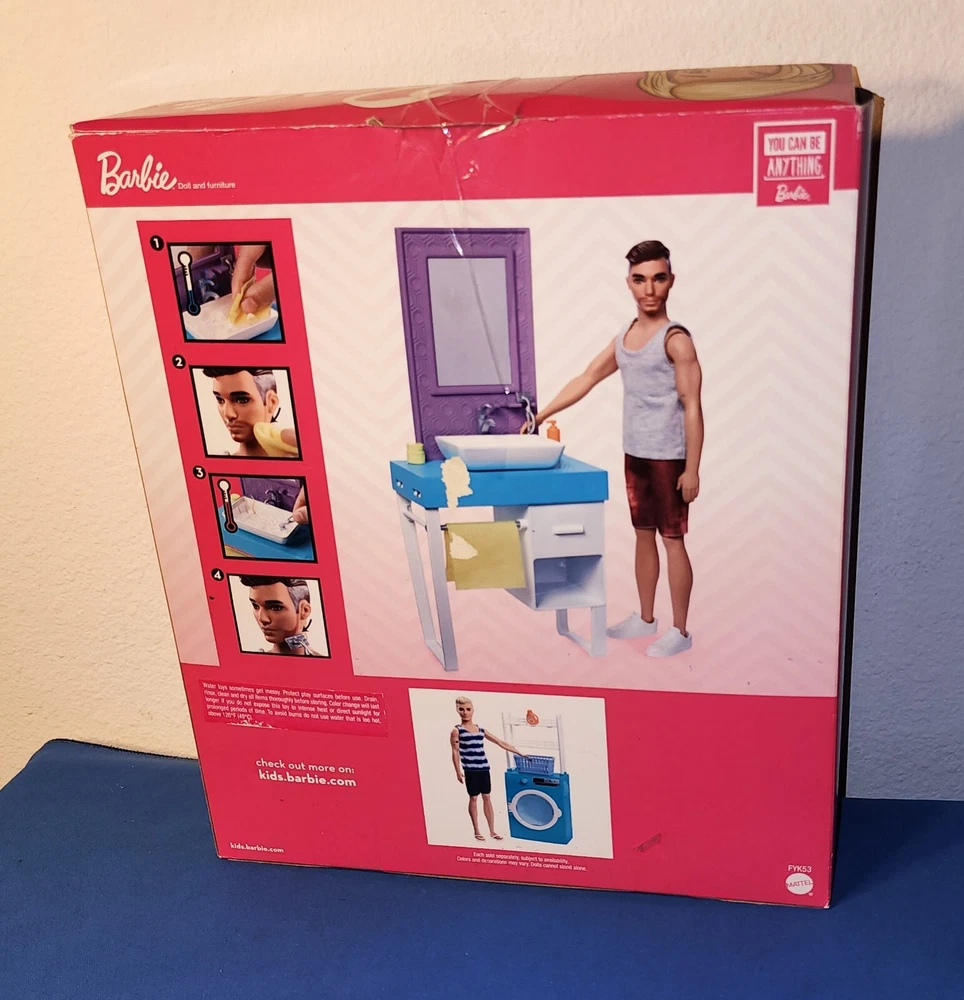 2018 Mattel Barbie Ken Shaving Bathroom Set #FYK53