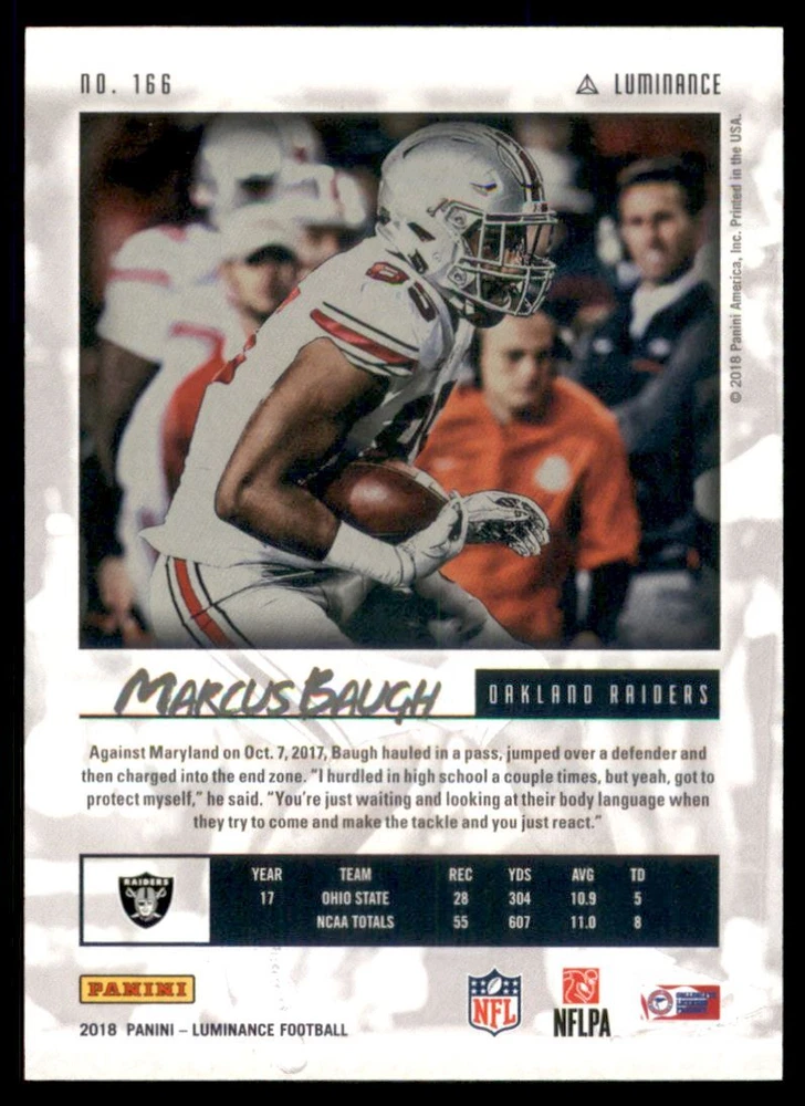 2018 Panini Luminance Orange #166 Marcus Baugh /225 Front Back Sport: Football Set: 2018 Panini Luminance Orange Year: 2018 Item#: 166 Player: Marcus Baugh Team: Oakland Raiders Attributes: Serial Numbered Brand: Panini Luminance Manufacturer: Panini Group Grading Company: Raw Grade SetType: Parallel Item Condition: Near Mint/Mint 2014 Beckett Collectibles, LLC. All Rights Reserved Powered by: Thank you for choosing Burbank Sportscards, the sports cards superstore. We offer a large selection of singles across all sports. Visit our ebay store to view all our items available. Our Shipping Policy We offer Free Standard Shipping to all Domestic customers. Options for Expedited shipping are also available at checkout. For our international customers, shipping is $9.99 for the first item, and $0.25 for each additional item. Note to all customers: To qualify for combines shipping, we ask our customers to add items into the shopping cart. Please note, we do not combine orders that are placed separately. Our Service: Generally, our turnaround is super quick as we process and send out orders same day payment is received. Stock Availability: We do our best to ensure all items are in stock; however, in case of the rare stock out, the customer will have the option for a replacement card, or we will process a refund so the order is not held up. Our Images: Many of our images are stock photos from Beckett archives. They are a representation of the actual card you would receive. If you have any questions regarding the item you're interested in, please feel free to ask (serial numbers and relic pieces may vary) Moreover, in a case of a wrong or defective photo, please notify us, so we can adjust it. Other FAQ's: -When buying multiple cards, do you top load each item? No; however, we do try to insure all items are shipped securely. If you wish to have all of your cards top loaded it is a paid service and can be arranged. Please email for more details. For other questions, please feel free to ask. Thank you.