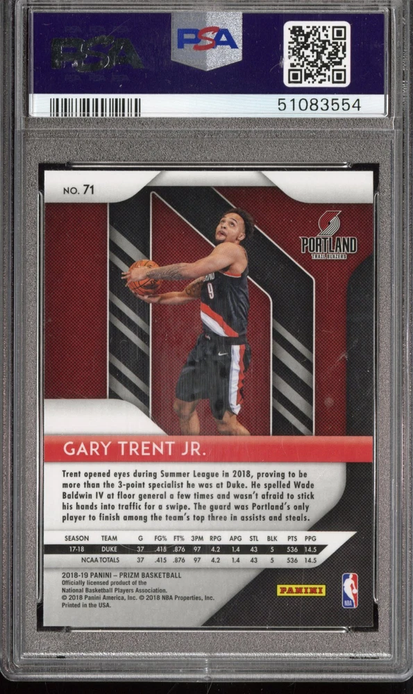 You are purchasing a 2018 Panini Prizm Gary Trent JR. #71 PSA 10. You will receive the exact item in the photographs. Thank you for looking. Listed With Mascot .