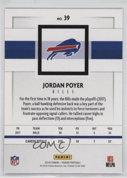 2018 Panini Silver Knight Jordan Poyer #39 Limited to 50