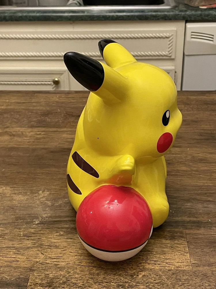 2018 Pokemon Company Exclusive Pikachu with Pokeball Ceramic Money Bank 9in Tall. Great pre-owned, vintage condition. Shipped with USPS Priority Mail.