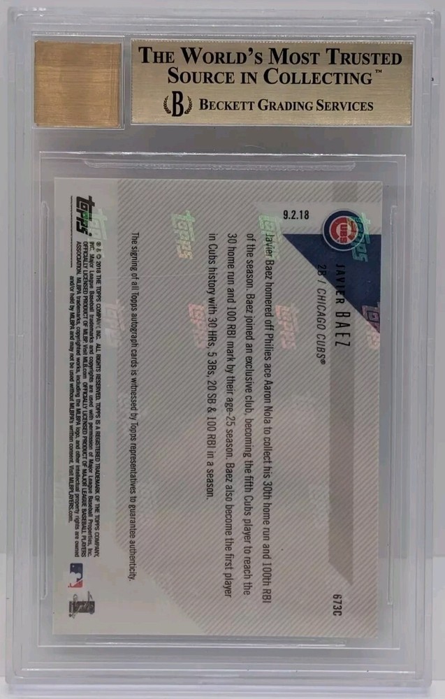 2018 Topps Now Javier Baez Purple AUTO #24/25 Chicago Cubs Beckett 9.5 Auto 10. Condition is Graded. Shipped with USPS Ground Advantage.