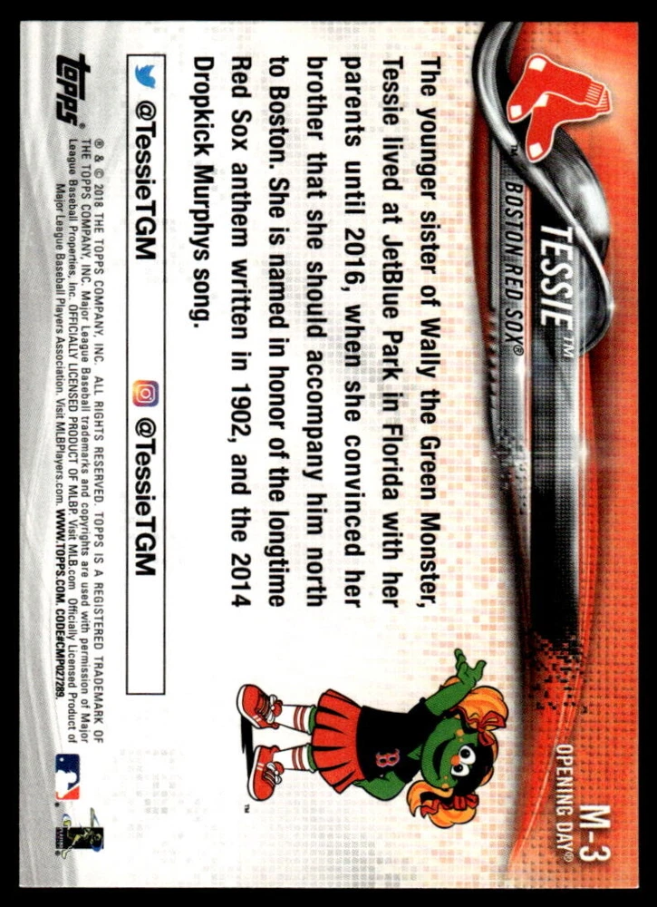 2018 Topps Opening Day Tessie Mascots #M-3 Boston Red Sox