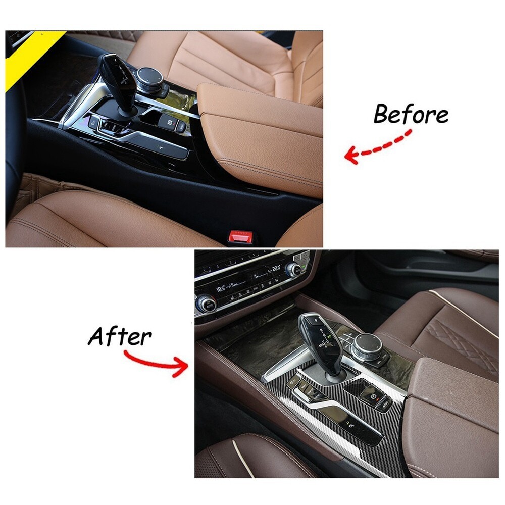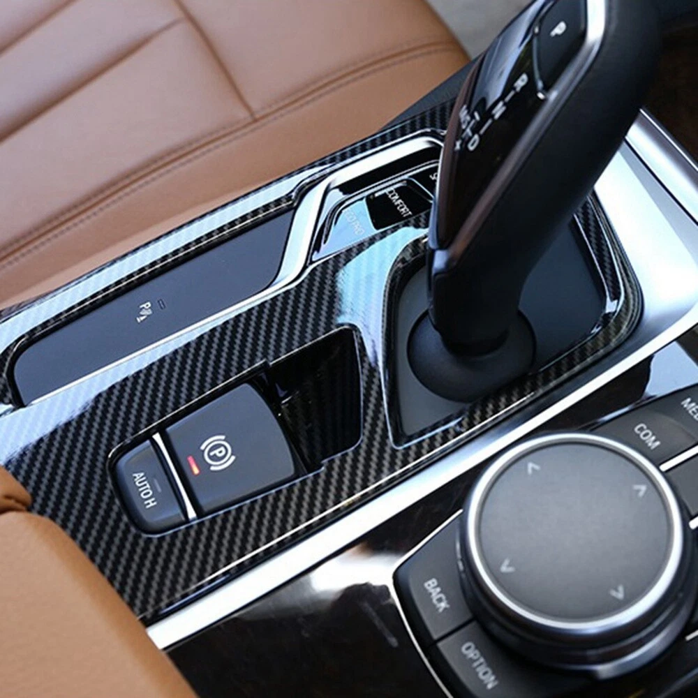 For - 5 Series G30 2018-2022 Carbon Fiber Car Center Console Gear Panel4719 High quality car interior decorative accessory For 5 Series G30 2018-2022 Prevent the of center console gear panel from scratches, dust, keeping it clear and new all the time. This item is made of high quality ABS plastic, , colorfast and . Fine processing creates gloss appearance, carbon fiber style for adding luxury and elegant sense to it. Self adhesive design, no harm to your car, easy to attach it to car and 't peel off. Condition: Name: Center Console Gear Shift Panel Cover Trim Colour:carbon fiber + black Material:ABS Package Contents: 1 x Gear shift panel cover