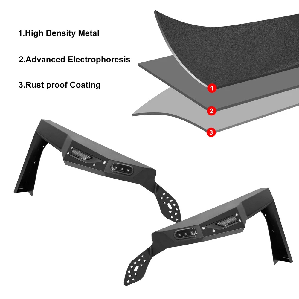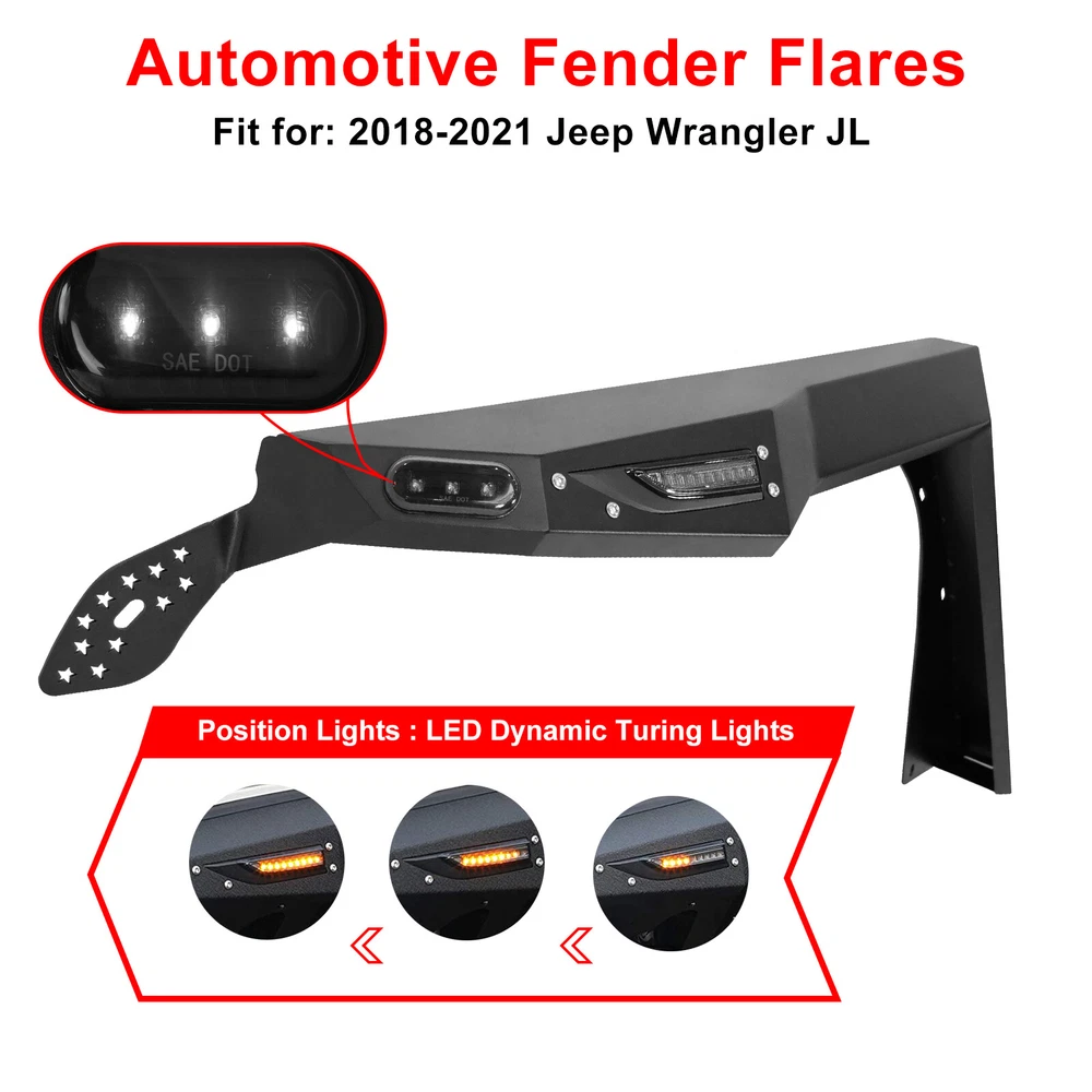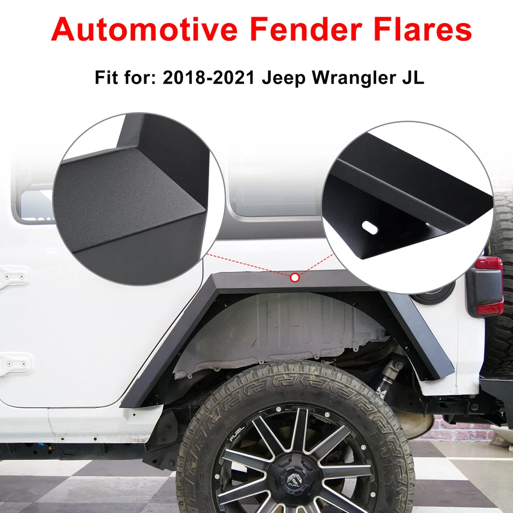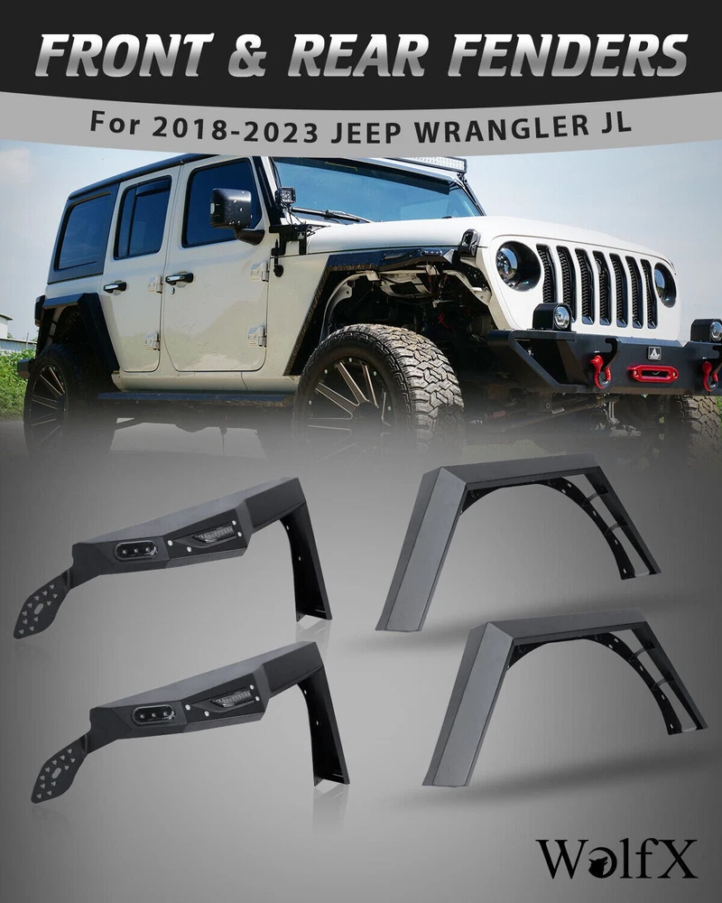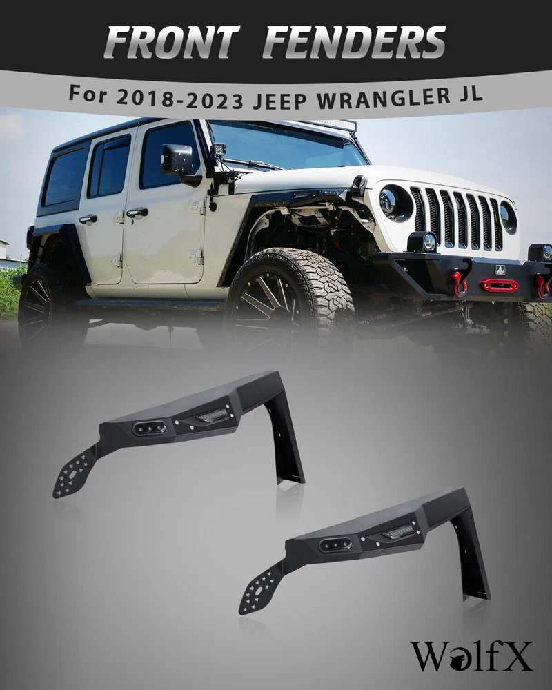 Home Payment Shipping Return Policy About Us Contact Us Feedback Title Other Car Refrigerator Front Bumper Rear Bumper Fender Flares Inner Fenders Side Steps Running Board A-Pillar Light Mount Brackets Headlights For Ford For Dodge For Chevrolet For Toyota For Mitsubishi Taillights For Chevrolet For Toyota For Ford For Jeep For Dodge For Honda For Nissan For Cadillac Fog Lights For Jeep For Dodge For Chrysler For Ford For Toyota For Chevrolet For Nissan For Lexus For GMC For Cadillac For BMW For Mercedes Benz LED Headlights For Ford For Dodge For Chevrolet For Toyota LED Taillights For Toyota For Chevrolet For Ford For Jeep For GMC For Honda For Cadillac LED Fog Lights For Toyota For Ford For Chevrolet For Mercedes Benz Jeep Headlights Tail Lights Fog Lights Refrigerator Bumper Fender Flares Inner Fenders A Pillar Light Mount Brackets Side Step More Chevrolet Headlights Tail Lights Fog Lights Refrigerator Bumper Ford Headlights Tail Lights Fog Lights Refrigerator Bumper Toyota Headlights Tail Lights Fog Lights Refrigerator Bumper Dodge Headlights Tail Lights Fog Lights Refrigerator Bumper GMC Headlights Tail Lights Fog Lights Refrigerator Bumper 1* Pair of Front Fender Flares: https://www.ebay.com/itm/402994613519 1* Pair of Rear Fender Flares: https://www.ebay.com/itm/402994614924 Fender Flares Fearture: ✅FITMENT:This alloy steel fender flares fit for 2018 2019 2020 2021 2022 2023 jeep wrangler JL 4 doors and 2 Doors,No need modification.Include Unlimited Sport Sahara Rubicon. ✅PERFORMANCE:The alloy steel fender flares have a good performance.Excellect outlook design,meeting different off-road driving challenge. ✅INSTALLATION:No need worry about this jeep wrangler jl fender flares installation.We prepare a installation mannual and also upload the installation video on this product page for reference. ✅DIFFERENT:This fender flare design by our own team,so have different modern outlook style,have the led daytime running light function and the led sequential turn light function,powder coated treatment with the fender flare alloy steel surface. ✅CONFIDENCE:We are not only a seller, but also the direct manufacturer for many years.We design the exterioer trim accessories. ✅WARRANTY:We offer 12 months warranty for this jeep wrangler jl fender flares.and also offer 60 days return free. Fender Flares Fitment : ✅ For 2018 Jeep Wrangler JL/JLU (4 door or 2 door) ✅ For 2019 Jeep Wrangler JL/JLU (4 door or 2 door) ✅ For 2020 Jeep Wrangler JL/JLU (4 door or 2 door) ✅ For 2021 Jeep Wrangler JL/JLU (4 door or 2 door) ✅ For 2022 Jeep Wrangler JL/JLU (4 door or 2 door) ✅ For 2023 Jeep Wrangler JL/JLU (4 door or 2 door) Fender Flares Specification: ✅ Material: Black Powder Coated Steel ✅ Features: Mounting Hardware Included ✅ Front Fender Flares Weight: 22.05 lbs ✅ Front Fender Flares Dimensions: 44.0 x 6.4 x 21.6 Inches ✅ Front Fender Flares Package Weight: 28.66 lbs ✅ Front Fender FlaresPackage Dimensions: 56.7 x 24.4 x 8.7 Inches ✅ Rear Fender Flares Weight: 17.31 lbs ✅ Rear Fender Flares Dimensions: 46.5 x 5.6 x 18.2 Inches ✅ Rear Fender Flares Package Weight: 23.81 lbs ✅ Rear Fender Flares Package Dimensions: 55.3 x 26.4 x 9.1 Inches Fender Flares Package: ✅ 1* Pair of Front Fender Flares ✅ 1* pair of Rear Fender Flares ✅ 1* set of Mounting Accessories ✅ 1* Installation Manual Payment Delivery details Terms of sales About us Contact us Payment We accept PayPal, credit card , Apple Pay & Google Pay etc. Delivery details All items will be shipped within 1-3 business days after payment received, we will try our best to ship out as soon as we can, hope for your understanding. Please double confirm your address and contact information, which will help the delivery faster and more accurately. Note :buyers who purchase international products need to pay import tariffs!!! Terms of sales Professional installation is highly recommended. Any problem of the item please feel free to contact us first , please D o Not leave negative feedback before that, or simply return it within 60 Days in original condition. We will resolve it for you ASAP. About us Any questions please do not hesitate to contact us directly by eBay message . We will reply you within 24 hours asap, thanks for your understanding. Contact us Should you have any problem or require any further information please feel free to contact us . If you are satisfied with our product and service, please kindly leave us a positive feedback. On Dec 9, 2024 at 21:23:20 PST, seller added the following information: