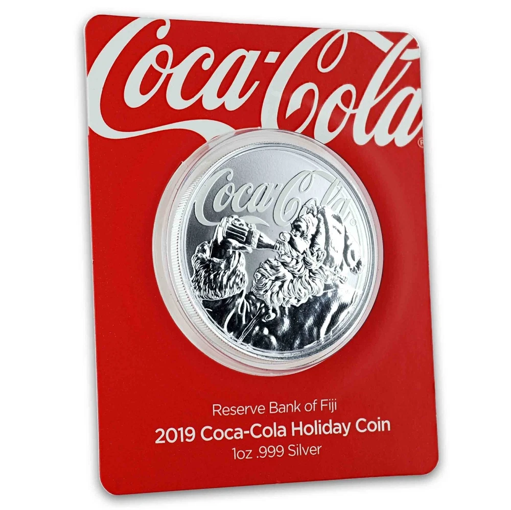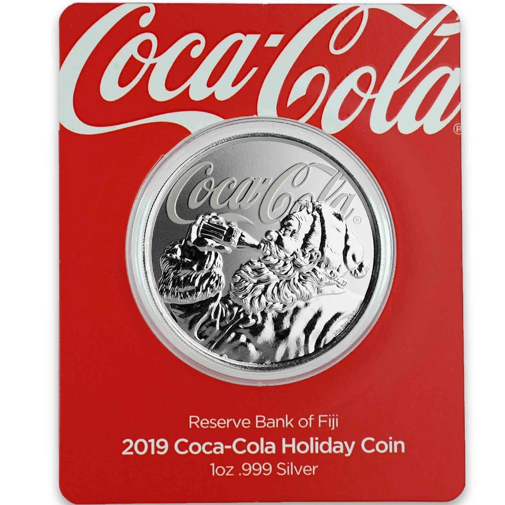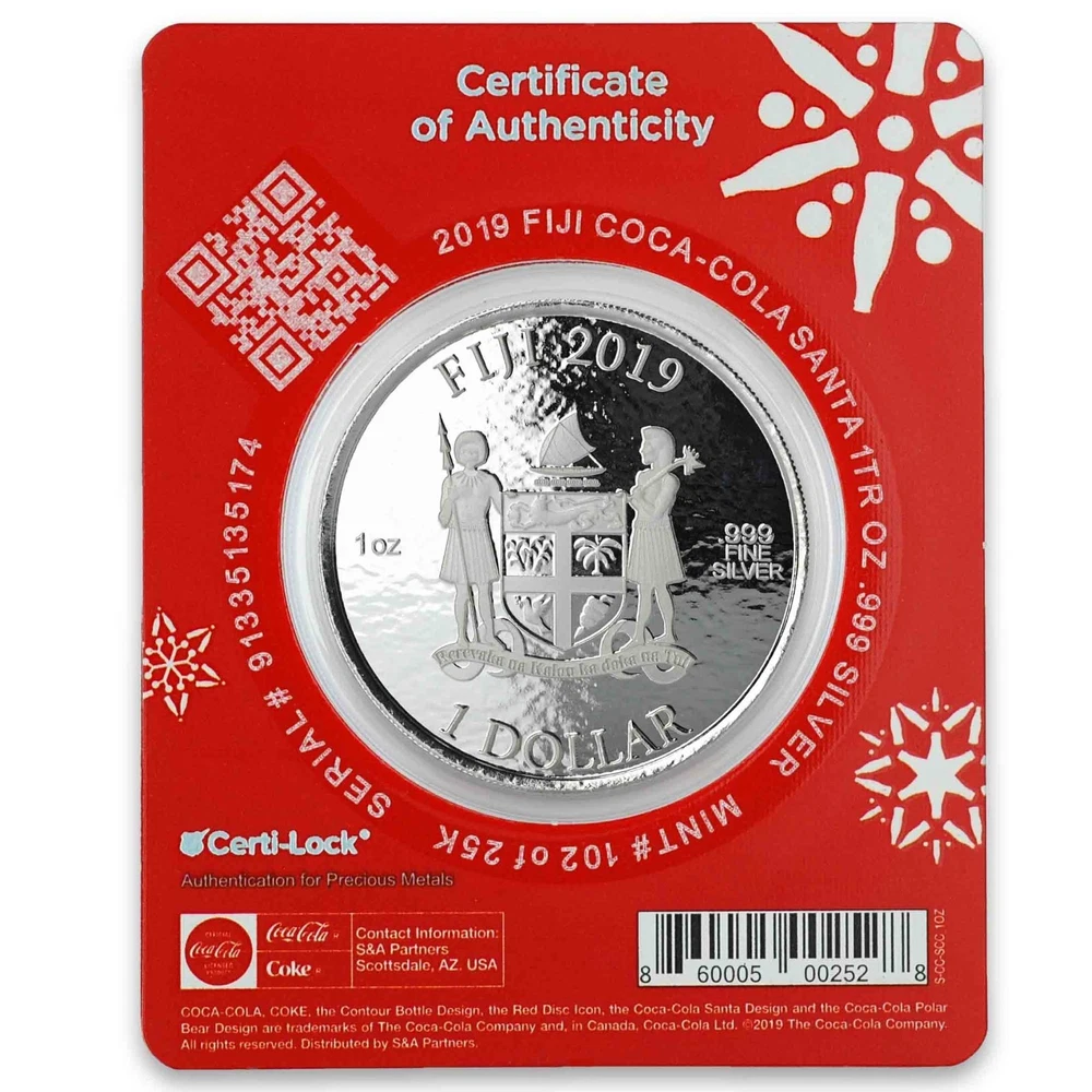 Merry Christmas from Scottsdale Mint! Scottsdale Mint is pleased to announce a special limited mintage release; The 2019 Coca-Cola 1 oz Silver Holiday Coin. Santa Claus and Coca-Cola are global pop culture icons that have been intertwined in holiday advertising since the 1920s, so much so that Coca-Cola actually helped to shape the image of Santa Claus as we picture him today (see the bottom of the page for more facts and history). The obverse of the coin features the iconic image of Santa Claus enjoying an ice-cold Coke. The detailed artwork is skillfully sculpted and struck in crisp, pure silver. The original image was painted by artist Fred Mizen in 1930 for a Coca-Cola ad and depicted Santa in a crowd drinking a bottle of Coke. On the reverse, you will find the Fijian Coat of Arms over a textured backdrop of soft, drifting snow, a nod to the poem 'Twas the Night Before Christmas ( A Visit from St. Nicholas ): As you tilt the coin back and forth in the light you will recall the line from the poem: "The moon, on the breast of the new-fallen snow, gave a luster of midday to objects below..." This coin truly will light up your Christmas and makes the perfect gift for anyone who loves Christmas or Coke, which just about covers all of humanity. The mintage is far fewer than 7 Billion though, so make sure to get one quick. These special edition holiday coins are manufactured and distributed by Scottsdale Mint, are legal tender in Fiji, and have a limited mintage of only 25,000 pieces . Each weighing one troy ounce, struck in .999 fine Silver, these coins ship in Scottsdale Mint's patented Certi-Lock® security and authentication packaging. Key Features Official Coca-Cola® collectible coin 99.9% Pure, Solid Silver (not plated!) Limited Edition Coca-Cola Branded Assay Card Easy to Verify Authenticity Using Certi-Lock® Phone App ( free download from app store) Each Card Bears A Unique Mintage Number and Serial Number Legal Tender Pure Silver Coin Obverse Features Classic Santa Claus Enjoying a Coke Artwork Reverse Features Fiji Coat of Arms with Drifting Snow Backdrop Limited Mintage of only 25,000 Coins Worldwide History of Santa Claus and Coca-Cola (text from by Coca-Cola.com) The Santa Claus we all know and love — that big, jolly man in the red suit with a white beard — didn’t always look that way. In fact, many people are surprised to learn that prior to 1931, Santa was depicted as everything from a tall gaunt man to a spooky-looking elf. He has donned a bishop's robe and a Norse huntsman's animal skin. In fact, when Civil War cartoonist Thomas Nast drew Santa Claus for Harper's Weekly in 1862, Santa was a small elflike figure who supported the Union. Nast continued to draw Santa for 30 years, changing the color of his coat from tan to the red he’s known for today. Here, a few other things you may not have realized about the cheerful guy in the red suit. 1. Santa Has Been Featured in Coke Ads Since the 1920s The Coca-Cola Company began its Christmas advertising in the 1920s with shopping-related ads in magazines like The Saturday Evening Post . The first Santa ads used a strict-looking Claus, in the vein of Thomas Nast. In 1930, artist Fred Mizen painted a department-store Santa in a crowd drinking a bottle of Coke. The ad featured the world's largest soda fountain, which was located in the department store Famous Barr Co. in St. Louis, Mo. Mizen's painting was used in print ads that Christmas season, appearing in The Saturday Evening Post in December 1930. 2. Coca-Cola Helped Shape the Image of Santa In 1931 the company began placing Coca-Cola ads in popular magazines. Archie Lee, the D'Arcy Advertising Agency executive working with The Coca-Cola Company, wanted the campaign to show a wholesome Santa who was both realistic and symbolic. So Coca-Cola commissioned Michigan-born illustrator Haddon Sundblom to develop advertising images using Santa Claus — showing Santa himself, not a man dressed as Santa. For inspiration, Sundblom turned to Clement Clark Moore's 1822 poem " A Visit From St. Nicholas " (commonly called "'Twas the Night Before Christmas"). Moore's description of St. Nick led to an image of a warm, friendly, pleasantly plump and human Santa. (And even though it's often said that Santa wears a red coat because red is the color of Coca-Cola , Santa appeared in a red coat before Sundblom painted him.) Sundblom’s Santa debuted in 1931 in Coke ads in The Saturday Evening Post and appeared regularly in that magazine, as well as in Ladies Home Journal , National Geographic , The New Yorker and others. From 1931 to 1964, Coca-Cola advertising showed Santa delivering toys (and playing with them!), pausing to read a letter and enjoy a Coke, visiting with the children who stayed up to greet him, and raiding the refrigerators at a number of homes. The original oil paintings Sundblom created were adapted for Coca-Cola advertising in magazines and on store displays, billboards, posters, calendars and plush dolls. Many of those items today are popular collectibles. Sundblom created his final version of Santa Claus in 1964, but for several decades to follow, Coca-Cola advertising featured images of Santa based on Sundblom’s original works. These paintings are some of the most prized pieces in the art collection in the company’s archives department and have been on exhibit around the world, in famous locales including the Louvre in Paris, the Royal Ontario Museum in Toronto, the Museum of Science and Industry in Chicago, the Isetan Department Store in Tokyo, and the NK Department Store in Stockholm. Many of the original paintings can be seen on display at World of Coca-Cola in Atlanta, Ga. (1) “My Hat’s Off to The Pause That Refreshes” — 1931. The magical transformation of the Coca-Cola Santa happened in 1931. Archie Lee, the ad agency creative director for the Coca-Cola account, was inspired to show a wholesome, kind Santa. He turned to artist Haddon Sundblom to creat