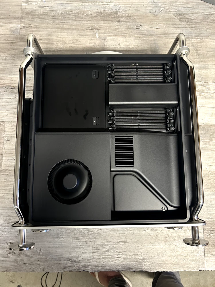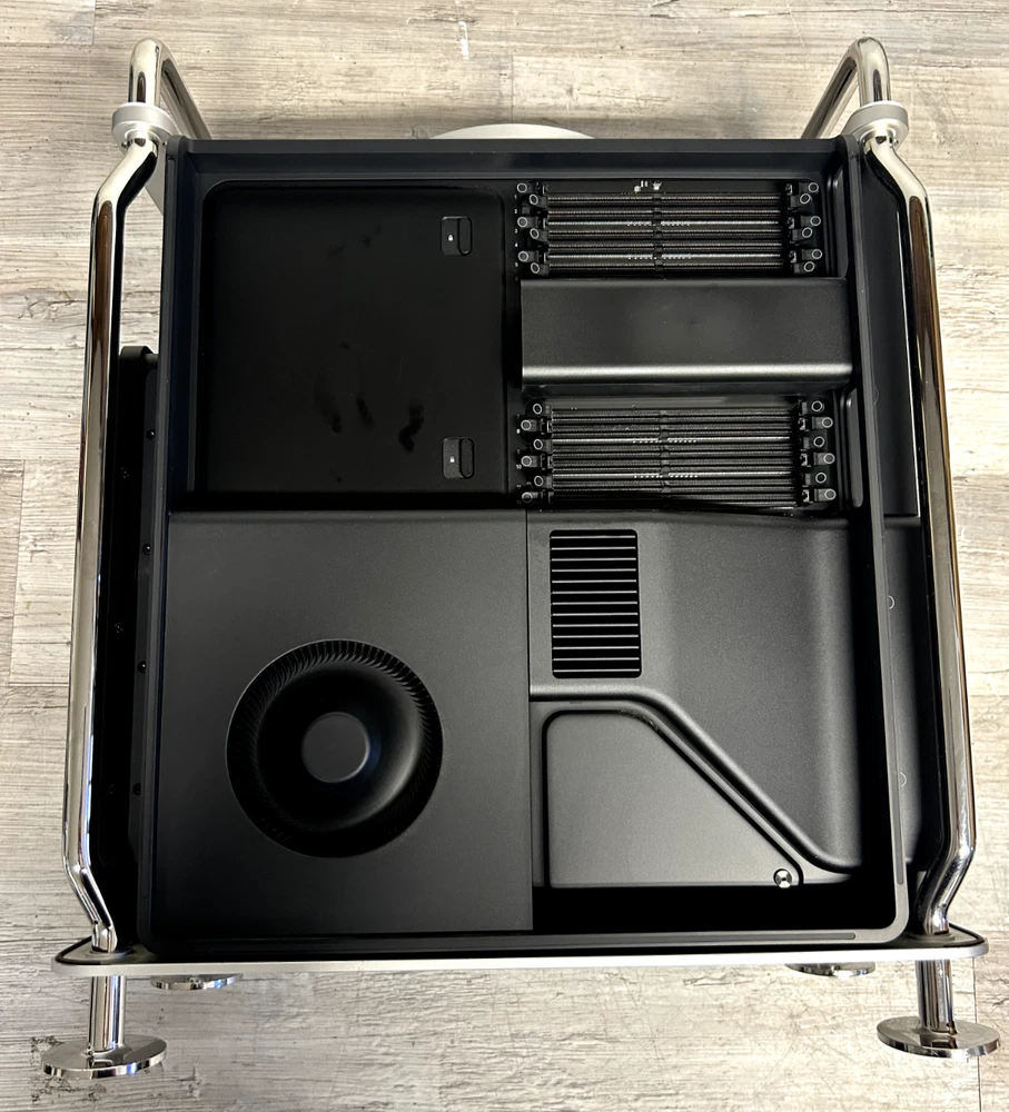 Mac Pro 2019 frame Includes logic board, front fan and exhaust fan No storage no RAM no GPU no CPU no PSU WORKING MACHINE once completed If you have a bad logic board or other issue, or want to custom build a setup from the ground up this is what you need.