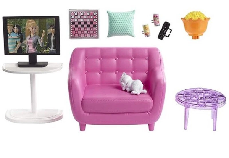 2019 Barbie Living Room Chair, Table, Television and Accessories FXG36 NEW!