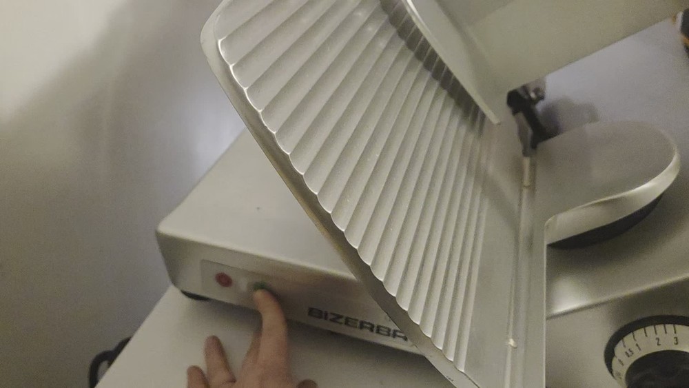 Bizerba GSP H 33 Manual Gravity fed slicer. Features a 13" blade, 1 phase, 120v, 60Hz, 3,5A This pre-owned Bizerba Slicer was removed from a local grocery that went out of business. Cleaned and tested, this is working an in fantastic shape. S/N 11660530