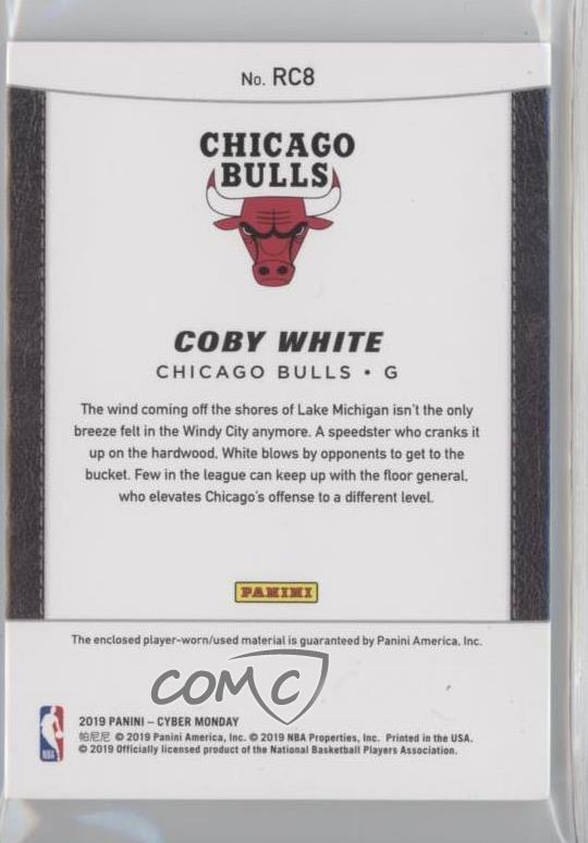 2019 Panini Cyber Monday - Rookies - Cracked Ice Materials #RC8 Coby White Qty Made: 25 - Rookie - MultiSport Card - Featuring the Chicago Bulls - Featuring Coby White Search for more: 2019 Panini Cyber Monday Search for more: 2019 Panini Cyber Monday - Rookies - Cracked Ice Materials View all of our Listings Auctions Buy It Now About Us Located in the beautiful Pacific Northwest, COMC (Check Out My Cards) is the world's largest consignment service for trading card singles. More than 10,000 people have used our consignment service to list over 50 million trading cards. Find out how we can help you consign your items on eBay by contacting us through eBay messaging. COMC -- "The Safe & Easy Way to Buy & Sell" Representative Image - Select Specific Item above to see image of actual item Representative Image - Select Specific Item above to see image of actual item Raw Condition for Modern Cards Unless otherwise noted, raw modern cards are listed in Near Mint-Mint condition or better. A NM-MT card appears to be Mint at first glance, but upon closer inspection, may exhibit some of the following: minor print defects (e.g. roller marks, print line, dimple), minor scratches, slight edge wear, and slight corner wear. Centering is clearly visible in the images provided and does not factor into our condition assessment. Raw Condition for Vintage Cards Unless otherwise noted, raw vintage cards are listed in Excellent condition or better. An EX card may exhibit some of the following: minor rounding of corners, surface wear, print defects, light scratches, and slight edge wear/chipping. Centering is clearly visible in the images provided and does not factor into our condition assessment. Domestic Shipping Combined shipping for multiple items is available. To receive combined shipping, please ensure all desired items are in your eBay shopping cart before proceeding to checkout. eBay limits orders to 40 items per order. We automatically combine multiple orders placed on the same day. If you place multiple orders on the same day, please contact us to request a refund of applicable shipping costs. Signature confirmation may be required on invoices over $400. All cards are protected and shipped securely. International Shipping COMC offers eBay's International Shipping (EIS) for international orders under $2,500* (see country exceptions below). All duties and import fees are paid at checkout; in the rare event that there are additional import fees upon delivery, these are borne by the buyer. EIS packages route through a shipping hub in Erlanger, KY before shipping to their final destination. Please note that EIS does not allow for combined shipments. The shipping rates are determined by eBay and cannot be adjusted. *Maximum sale price exceptions: Colombia, Kuwait ($2,000); Taiwan ($1,539); Chile, Costa Rica, Guatemala, Honduras, Trinidad and Tobago ($1,000); Antigua and Barbuda, Aruba, Belize, Dominica, Grenada, Philippines, Saint Kitts and Nevis, Saint Lucia, Montserrat, Turks and Caicos Islands ($500); Dominican Republic, El Salvador ($200). Please request a shipping quote through eBay messaging for orders that exceed the maximum sale price supported by eBay's International Shipping. You will be responsible for all duties and import fees for international orders shipped outside the EIS. All cards are protected and shipped securely. Payment COMC does not accept offers on our cards through our eBay storefront. COMC utilizes eBay’s managed payments system. If you are experiencing difficulties making a payment, please contact eBay for assistance. Return Policy Returns are only accepted on the rare occasion the item is not as described. If you are making a return, please initiate the return process through eBay so a mailing label can be provided for you. Prior to listing, our expert team carefully assessed this item to represent it accurately. Please review the description and high-definition images prior to purchasing to ensure this item meets your satisfaction. We welcome you to contact us if you have further questions about this item. Trust and Integrity COMC carefully assesses each item consigned to us to prevent fraudulent items from entering the marketplace. If you believe an item offered on COMC may be fraudulent, please contact us with details so we can investigate the issue. Items we determine are outside our supported items policy may be removed. Last Modified: 1/28/2025 9:07:09 AM PDT