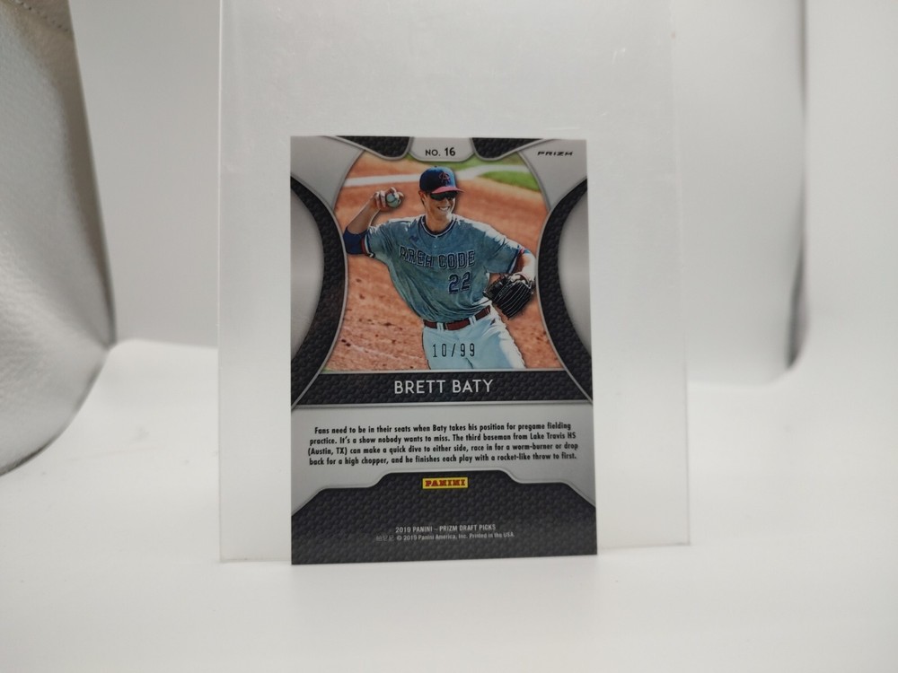 This Brett Baty rookie card is a sharp-looking addition to any collection! The red, white, and blue Prizm design really pops, and the /99 serial numbering makes it a solid grab for Mets fans or prospectors. Seller is transparent about condition—card looks clean in the pics—and offers fair pricing with flexible shipping options. Great communication too, so don’t hesitate to reach out with offers! A smooth buy for a sweet pull.