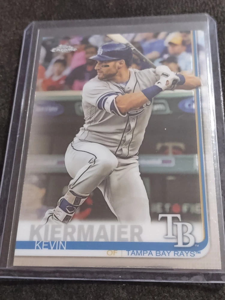 Product: Single Manufacturer: Topps Brand: Topps Chrome Set: 2019 Topps Chrome Season: 2019 Period: Modern (1970-Now) Player/Athlete: Kevin Kiermaier Card Manufacturer: Topps Co. Sport: Baseball Team: Tampa Bay Rays, N/A Original/Reprint: N/A Type: Sports Trading Card League: MLB Year: 2019 Card Number: 180 Player: N/A