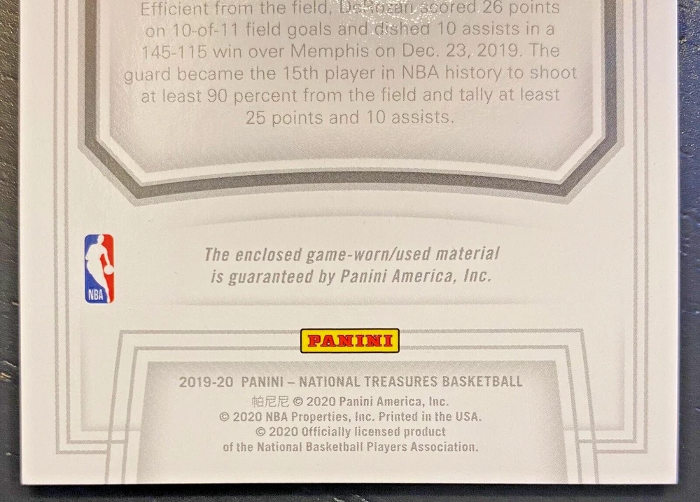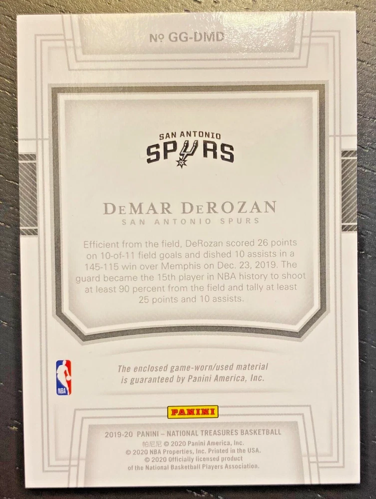 2019-20 Panini National Treasures DeMar DeRozan #GG-DMD /99 Game Gear Spurs