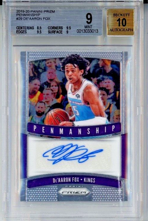 2019-20 Panini Prizm Penmanship De'Aaron Fox Sacramento Kings BGS 9 AUTO 10! USPS