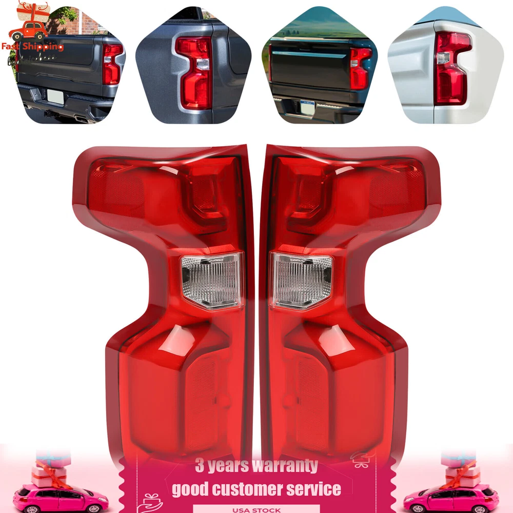 LH+RH LED Tail Lights Rear Lamps For 2019 20 2021 Chevy Silverado 1500 Left+Right LED Tail Light For 2019-2021 Chevy Silverado 1500 Rear Lamp Specifications Manufacturer Part Number: 84678149, 84678150 Interchange Part Number: GM2800311, 84678150 OE/OEM Part Number: 84678149, 84678150 Applicable Model: For 2019-2021 Chevy Silverado 1500 Condition: New Material: PP+PC Lens Color: Clear, Red Housing Color: Black Light Source Type: LED (Included) Type: Tail Light Assembly Assembly Method: Closed Installation Position: Rear, Left, Right Way of Use: Direct Replacement Gross Weight: 1.5kg/3.31 lbs Net Weight: 1.3kg/2.87lbs Package Size: 47*25*20cm/18.5*9.84*7.87inch Key Features Good Compatibility: This product is a customized product, specially customized for the 19-21 Chevrolet Silverado 1500. So it can be compatible with the adapted models. Safe Driving: The driving light, turn signal, brake light, and reversing light with energy-saving, environmentally friendly, and bright LED light source can accurately transmit information to the vehicles behind when driving at night, greatly reducing the risk of rear-end collisions and providing a security guarantee for you and your family. Protective Packaging: This product comes in custom foam to resist compression and falls, which can prevent product damage in transit. Highlights Brand New, With High Quality Direct Replacement Trouble-free Installation Stylish Appearance Strong and Durable Exquisite Workmanship Stable Performance Long Service Life Notes Please confirm that the product fits your car before purchase. Compatible w/Factory LED tail light only. We strongly recommended professional installation. Please contact us if you have any questions. Please allow the slight difference caused by the shooting light and 1-3cm error due to manual measurement, and make sure you do not mind before ordering. Fits (As a Reference) For 19-21 Chevrolet Silverado 1500 oem; 84678149, 84678150 Package Included 1* Left+Right Taillight Payment Delivery details Terms of sales About us Contact us Payment We accept ebay payment 。 Fees such as import duties, taxes are not included in the item price or shipping costs. These charges are the buyer's responsibility. Delivery details Shipping: 2-9 working days to: USA Terms of sales We maintain high standards of excellence and strive for hundred percent customer satisfaction. Feedback is very important to us. We hope that you contact us immediately before you give neutral or negative feedback, so that we can address your concerns. It is impossible to address issues if we do not know about them! About us Your satis faction is our ultimate goal. We work hard to earn your trust and future business. Our certified technicians have tested each item before shipping. The unit comes with 1 year limited warranty on all manufacturing defects. a) If you receive a defective item, you may return it or ask for a discount. Please contact us within 14 days after you receive the package. b) What you returned must be intact and in its original packaging as re? u. Customer is responsible for shipping costs of the returned item. c) We will cover the cost of shipping back t with the shipping rate indicated in the registration page. We will send you a new unit or refund the full payment you paid. Thank you. Contact us Business Hour Business Hour: Monday To Friday: 8:30 AM to 5:00 PM (Beijing China time) Due to time zones, our reply to your questions may not be immediately. But within above working time, we will reply your email within 24 hours. If it's non-workdays, please kindly be patient and wait till Monday. Please contact us with ebay message. Please feel free to contact us if you have any questions. Monday To Friday: 8:30 AM to 5:00 PM (Beijing China time) Due to time zones, our reply to your questions may not be immediately. But within above working time, we will reply your email within 24 hours. If it's non-workdays, please kindly be patient and wait till Monday. Please contact us with ebay message. Please feel free to contact us if you have any questions. *Feature* High Quality, 2 Years Warranty Brand Unbranded Placement on Vehicle Rear, Right, Left Lighting Technology LED Manufacturer Part Number 84678149, 84678150 Interchange Part Number GM2800311, 84678150 OE/OEM Part Number 84678149, 84678150 Applicable Model For 2019-2021 Chevy Silverado 1500 Type Tail Light Assembly Material PP+PC Lens Color Clear, Red Housing Color Black Assembly Method Closed Way of Use Direct Replacement UPC does not apply