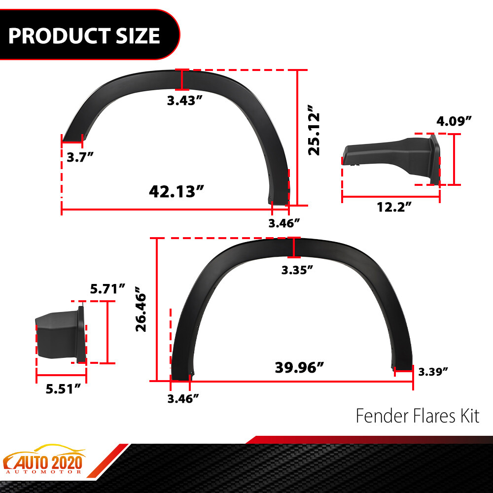 AUTOMOTO PRODUCT Fit For 2019-2024 Dodge Ram 1500 Matte Fender Flares Factory Style w/ Mud Guard Product Introduction Title: Fender Flares Kit Application: Fit For 2019-2024 Dodge Ram1500 Not Fit 1500 Classic & Rebel & TXR Models Please confirm the item whether matches your vehicle in the compatibility table before purchase Description: 100% brand new and high quality Easy To Install and durable use. High Quality Materials and High Quality Product. Direct pricing by the factory, no price increase by the middleman. Limited life guarantee for workmanship and defects. No Installation Guide or Instruction Included. Color: Blcak, as the picture Warranty: 1 Year Quantity: 1 Set Material: PP plastic Package include: 1 * Fender Flares Kit ( If not shown in the photo, it is not included. ) Note: All of the items in our shop will come to you with the tracking number If any question, pls contact us on eBay freely, we'll reply you in 2 business day. Visit shop home WELCOME to our ebay shop CONTACT US We Open 7 Days A Week ABOUT US ABOUT US: Welcome to GPLUS's eBay Store. We specialize in aftermarket automotive car parts and is the #1 industry distributor for affordable and quality products. Welcome to GPLUS's eBay Store. We specialize in aftermarket automotive car parts and is the #1 industry distributor for affordable and quality products. Welcome to GPLUS's eBay Store. We specialize in aftermarket automotive car parts and is the #1 industry distributor for affordable and quality products. SHIPPING Shipping Information All items will ship within 24 hours (Monday - Friday). Payment cleared/received on Friday will be shipped on the next business days (Monday or Tuesday). We are not responsible for carrier transit time. This information is provided by the carrier and excludes weekends and holidays. Note that transit times may vary, particularly during peak periods or in climate weather conditions, and that delivery times frames will need to be extended for any processing time frames in excess of 1-2 business days. excess of 1-2 business days. International Shipping: International buyers are responsible for possible customs fees, brokerage fees or duty fees. We would appreciate for understanding of tracking number would not be updated in between the city of departing in the U.S. and the city of destination. ATTENTION Cargo transportation Double check shipping address. We are not responsible for incorrect or undeliverable addresses. Please use Shipping & Payments tab on top of page for shipping details for your location. Transaction will be held until a full shipping amount received. Shipping address Some of the packages cannot be delivered to a PO Box. Customer is responsible to ensure PO Box address given is deliverable by the shipping company. Package will be held until a valid physical address is provided. Customer assumes shipping charges incurred in shipping to undeliverable address. Customs duties International buyers are responsible for all customs duties, taxes, and other applicable fees incurred by the country's customs/border regulations. Please contact customs for more information. We are not responsible for any changes to address after item has been shipped. RETURN please notify us within 30 days after you've received your purchased item. Return Policy: Buyers pay for return shipping fee. Items to be returned must be in resalable condition.14 Days money back, please notify us within 14 days after you've received your purchased item. If your order has been received and it is not what you ordered, or if your item has a manufacturer defect, please contact us within 14 days from delivery date. And you must contact us to request an Return Merchandise Authorization Number (RMA). No return package will be accepted without a valid RMA number. All products are covered by our warranty against defects. EMAIL click here for questions All return requests must be submitted through your eBay account. Iterms and Condition For emissions related items, please check with your local jurisdiction for emission specific requirements before purchasing. All items do not come with installation instruction unless otherwise specified. If item is questionable, please consult your local professional/mechanic before making purchase.