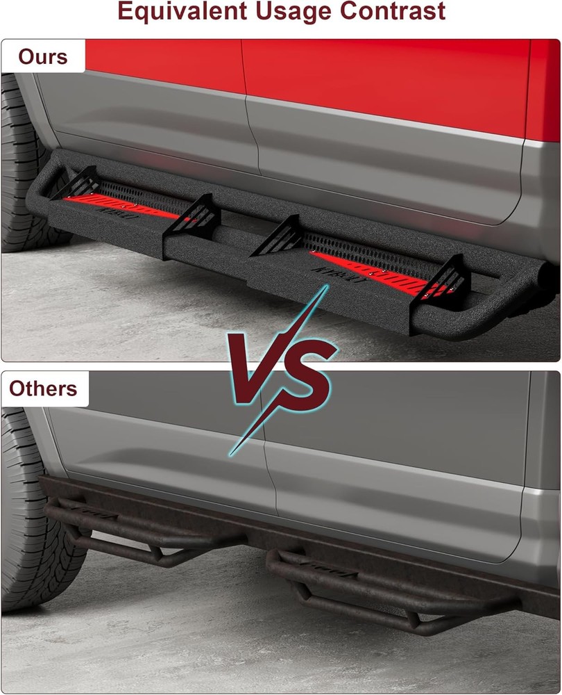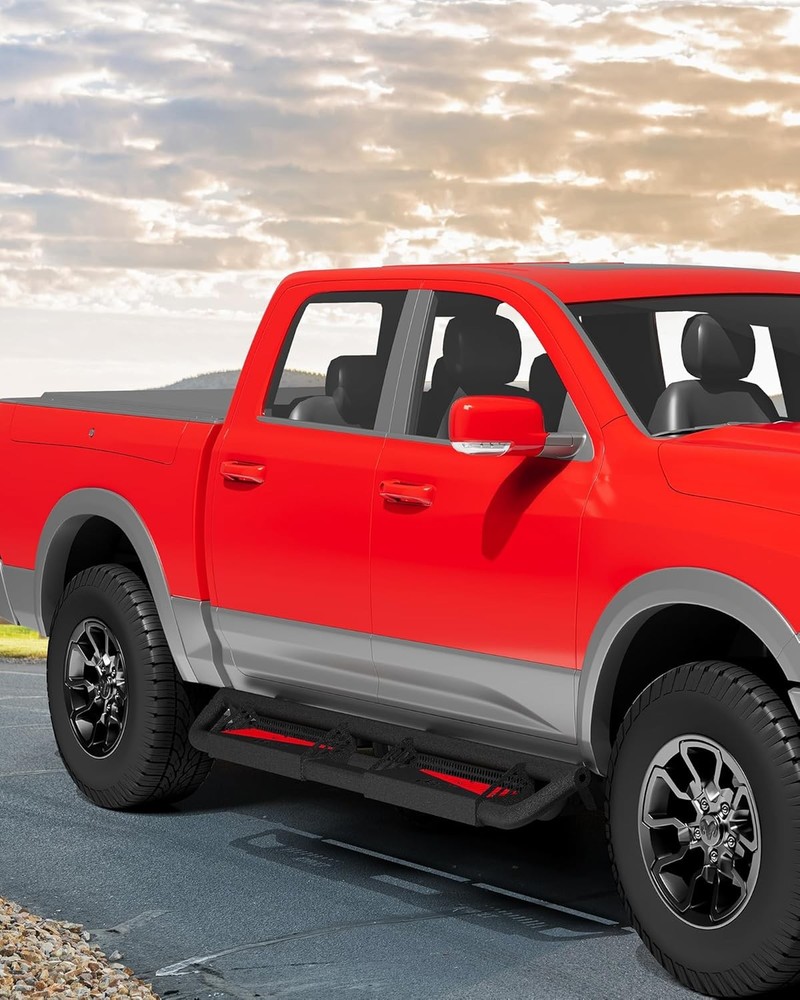 Just installed these steel running boards on my Ram 1500 and they look awesome! The heavy-duty alloy steel construction feels super solid, and they fit perfectly—no drilling required. Love how they protect the sides from road debris while making it way easier to step in and out of the truck. The textured finish gives great grip, even in wet weather. Super happy with the purchase—definitely recommend for anyone with a 2019+ Ram Crew Cab!