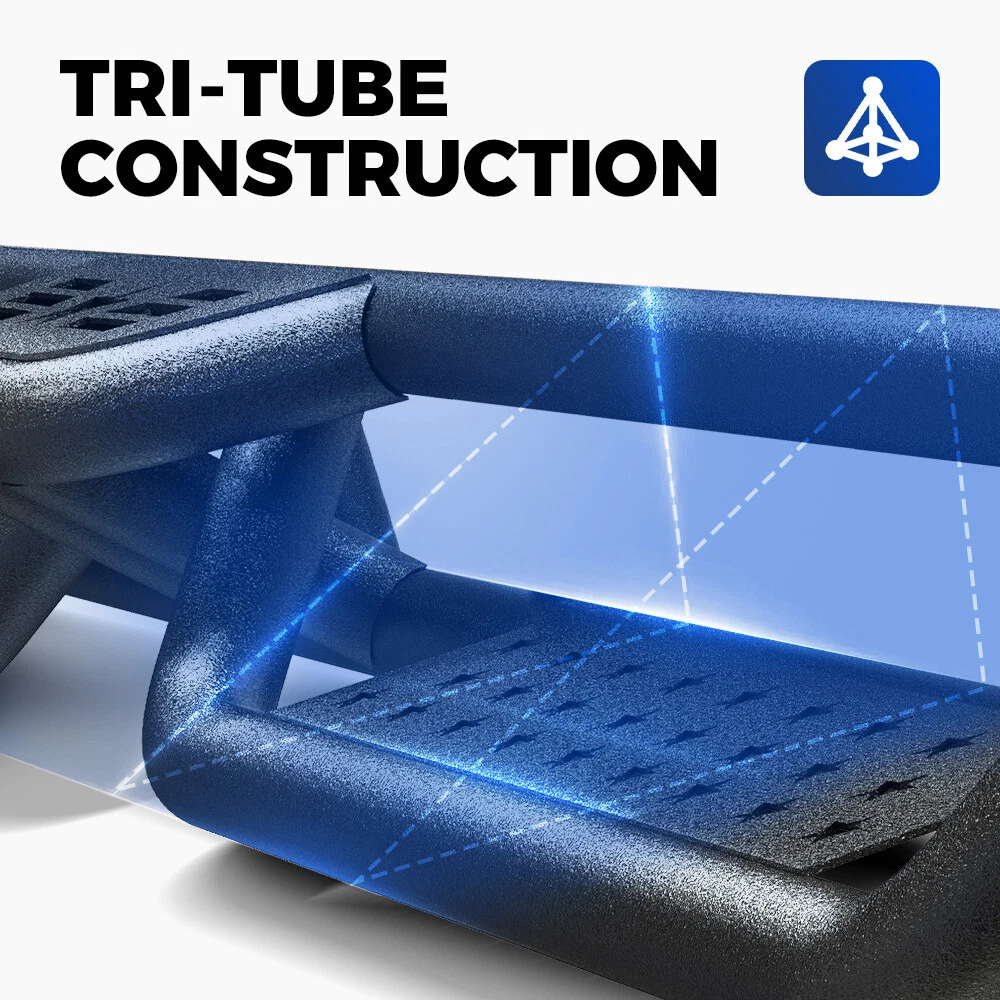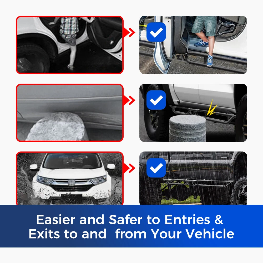 These running boards are a game-changer for my Ram 1500! The sturdy three-tube design offers excellent protection while the wide steps make entry effortless, especially with my lift kit. Installation was straightforward, and the sleek black finish looks fantastic. Perfect for taller trucks—no more struggling to get in and out. Highly recommend for any Ram Quad Cab owner!