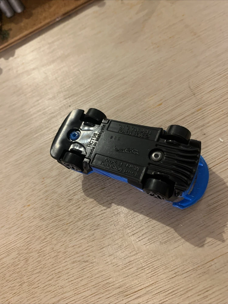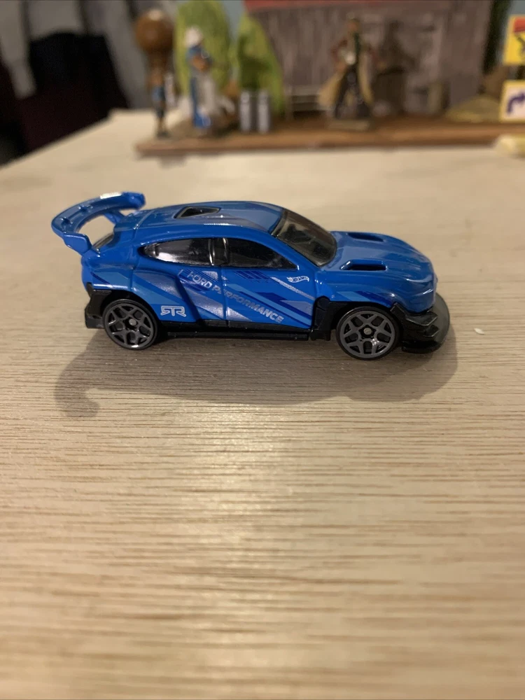 This is a 1:64 scale diecast collectible model of a 2020 Ford Mustang Mach-E 1400, part of the Hot Wheels Ford series. The car is featured in a striking blue colour and is made of diecast material. It comes with a 3D display for showcasing. Produced in 2023, this Ford Mustang model is a part of the Ford character family, making it a desirable addition for collectors of contemporary diecast vehicles.