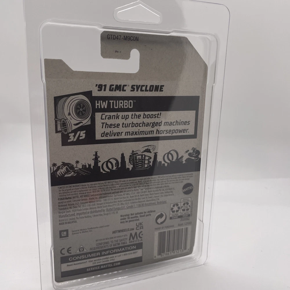 The Hot Wheels 2021 release of the '91 GMC Syclone in yellow is a 1:64 scale diecast pickup truck model. This special edition vehicle is part of the HW Turbo series and features a Kroger Exclusive design. Manufactured in Malaysia by Hot Wheels, this model replicates the 1991 GMC Syclone in intricate detail for collectors and enthusiasts of diecast vehicles. Please view photos for the condition of this item will gladly combine shipping and ship in the US only thank you