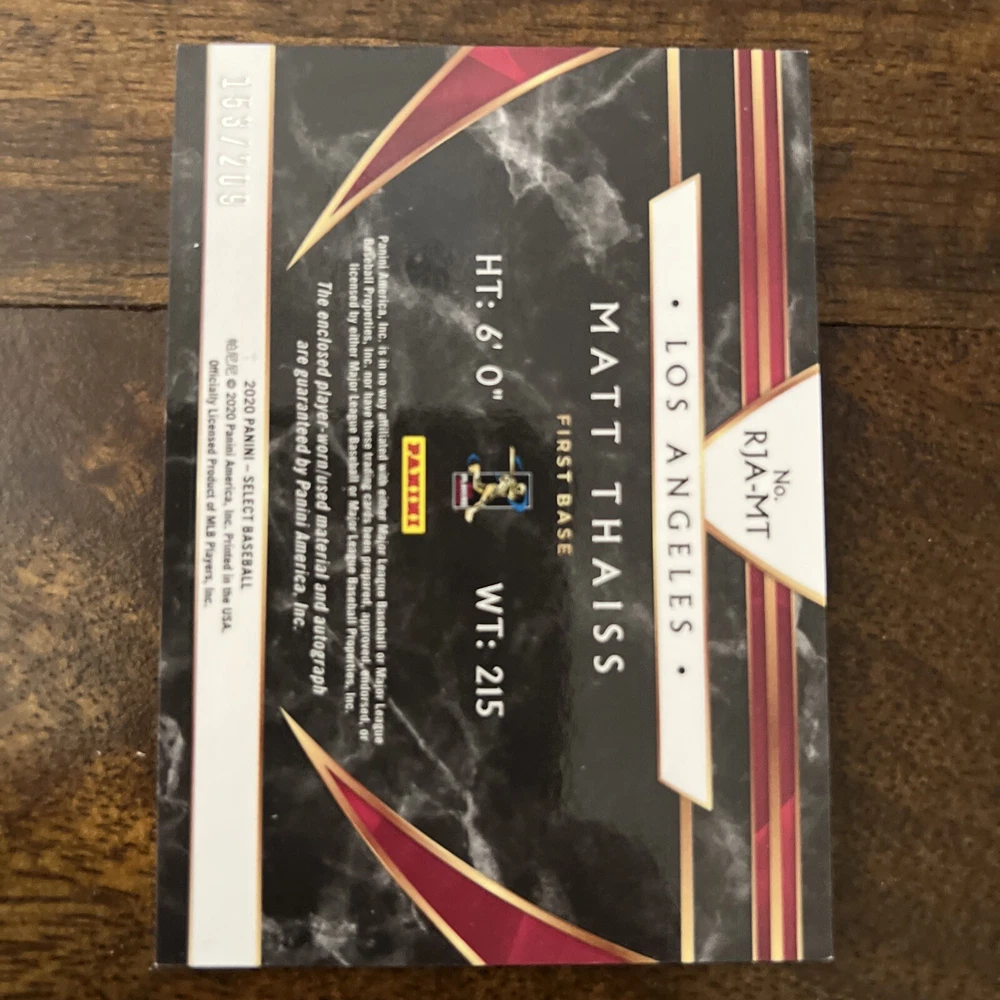 Home2020 Matt Thaiss Panini Select Rookie Jersey Autograph #RJA-MT RC /209