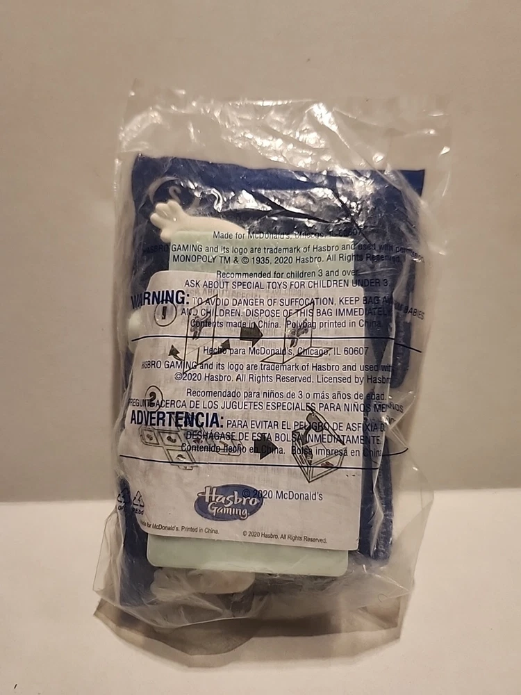 The product is a 2020 McDonald's Happy Meal Toy featuring Hasbro Gaming's Monopoly theme. It is a sealed, new item and is categorized under collectibles, advertising, and restaurants & fast food. The toy is a part of the McDonald's Happy Meal promotion and was likely released in 2020. The design of the toy is colorful and likely appeals to children, given its connection to the popular board game Monopoly. It was manufactured in China and is an original item, not a reproduction.